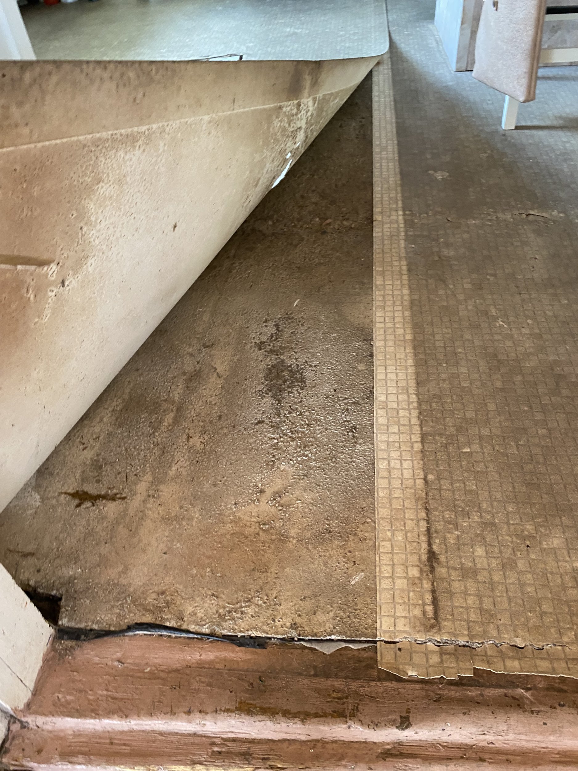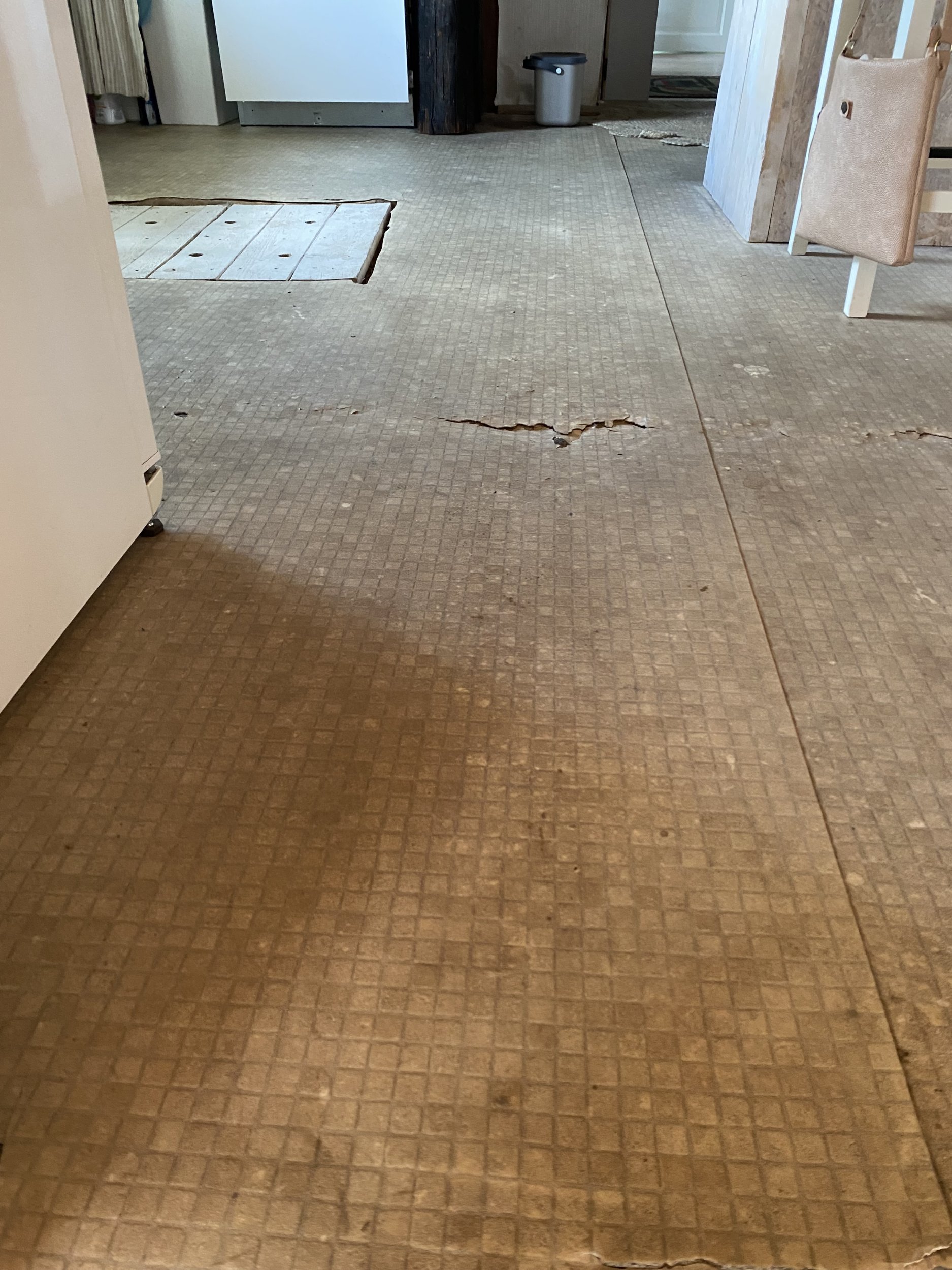 Vana palkmaja betoneeritud põranda lammutamine. Betooni paksus ca 15-20cm, mis on valatud kahes kihis.