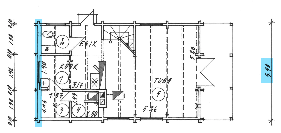 Tegemist on köögi, wc ja duššinurga seinaga.