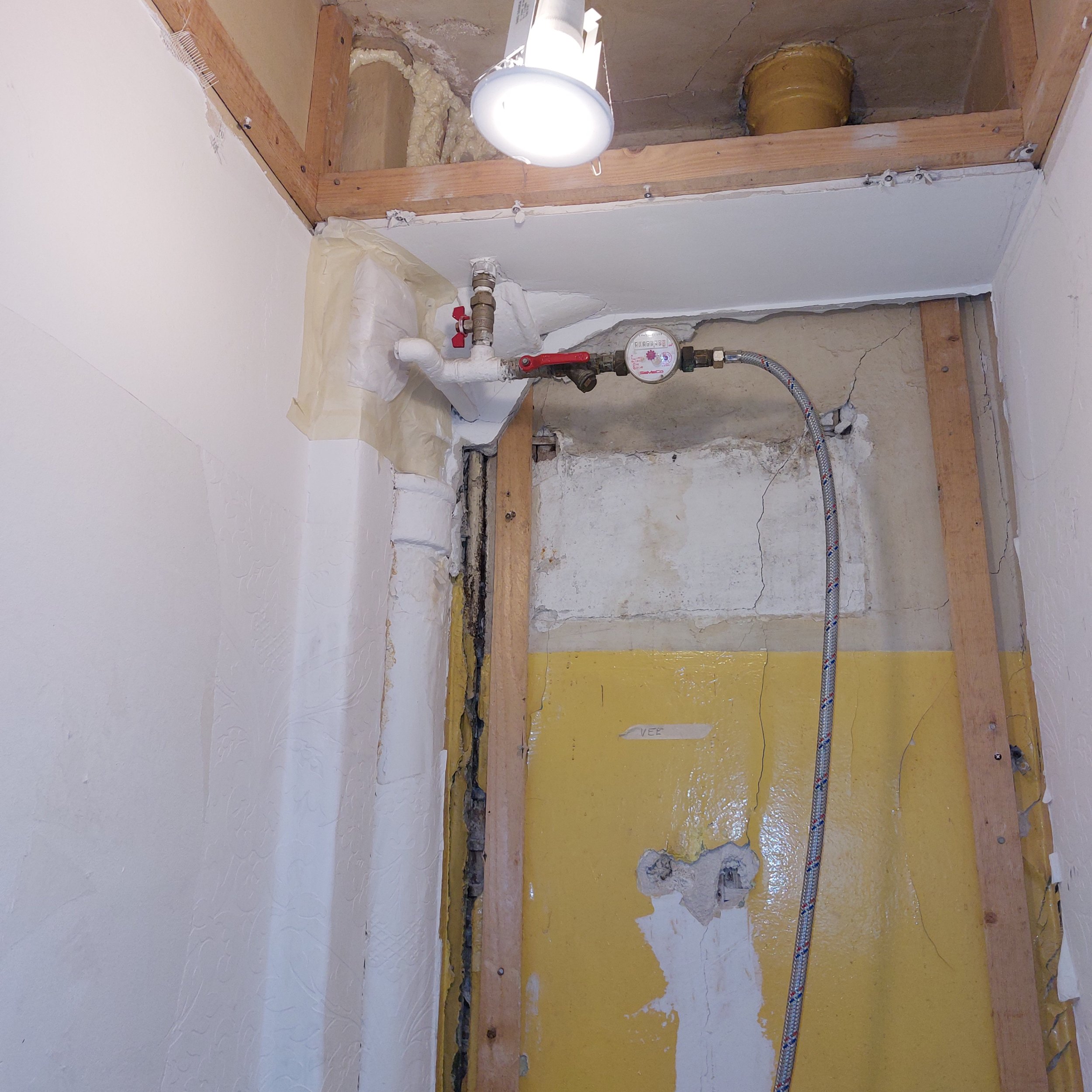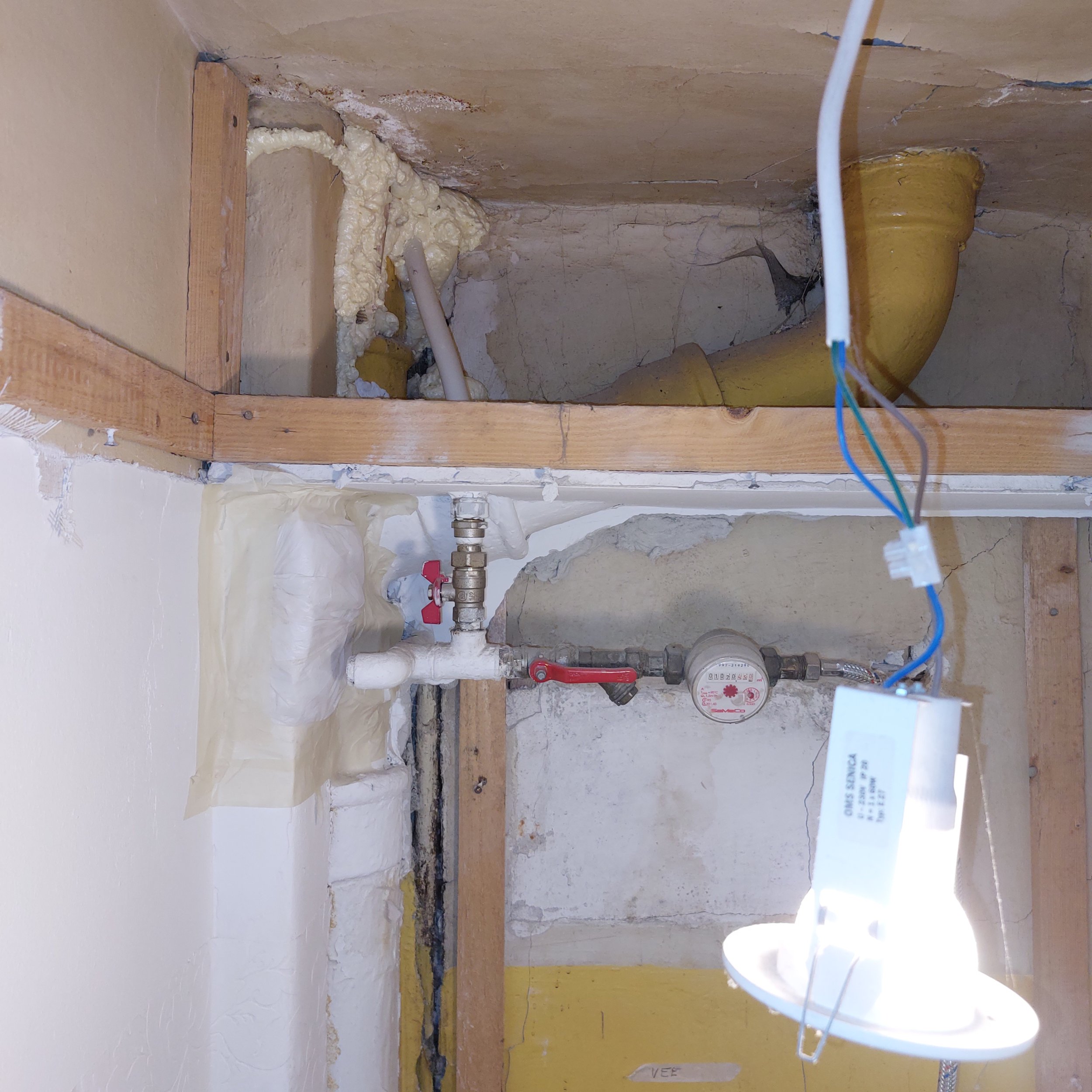 3-korruselise kortermaja (ehitusaeg 1938) kahe terasest veetoru ja kahe malmist kanalisatsioonitoru vahetus keldrist kuni katuseni.