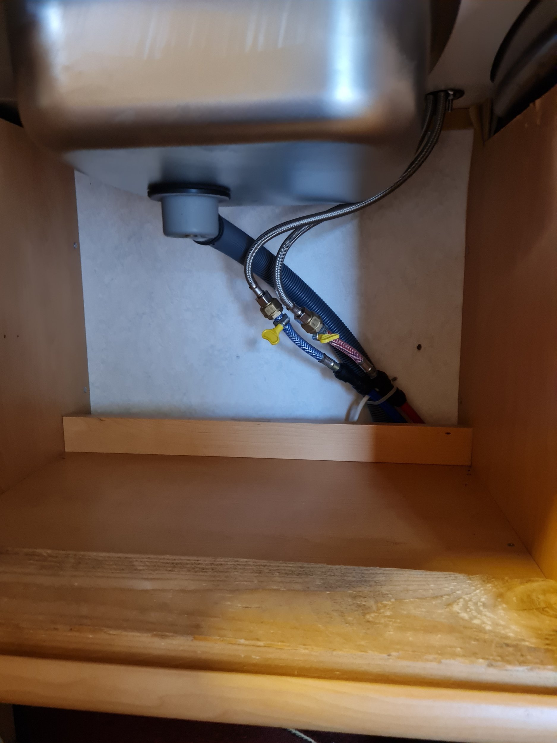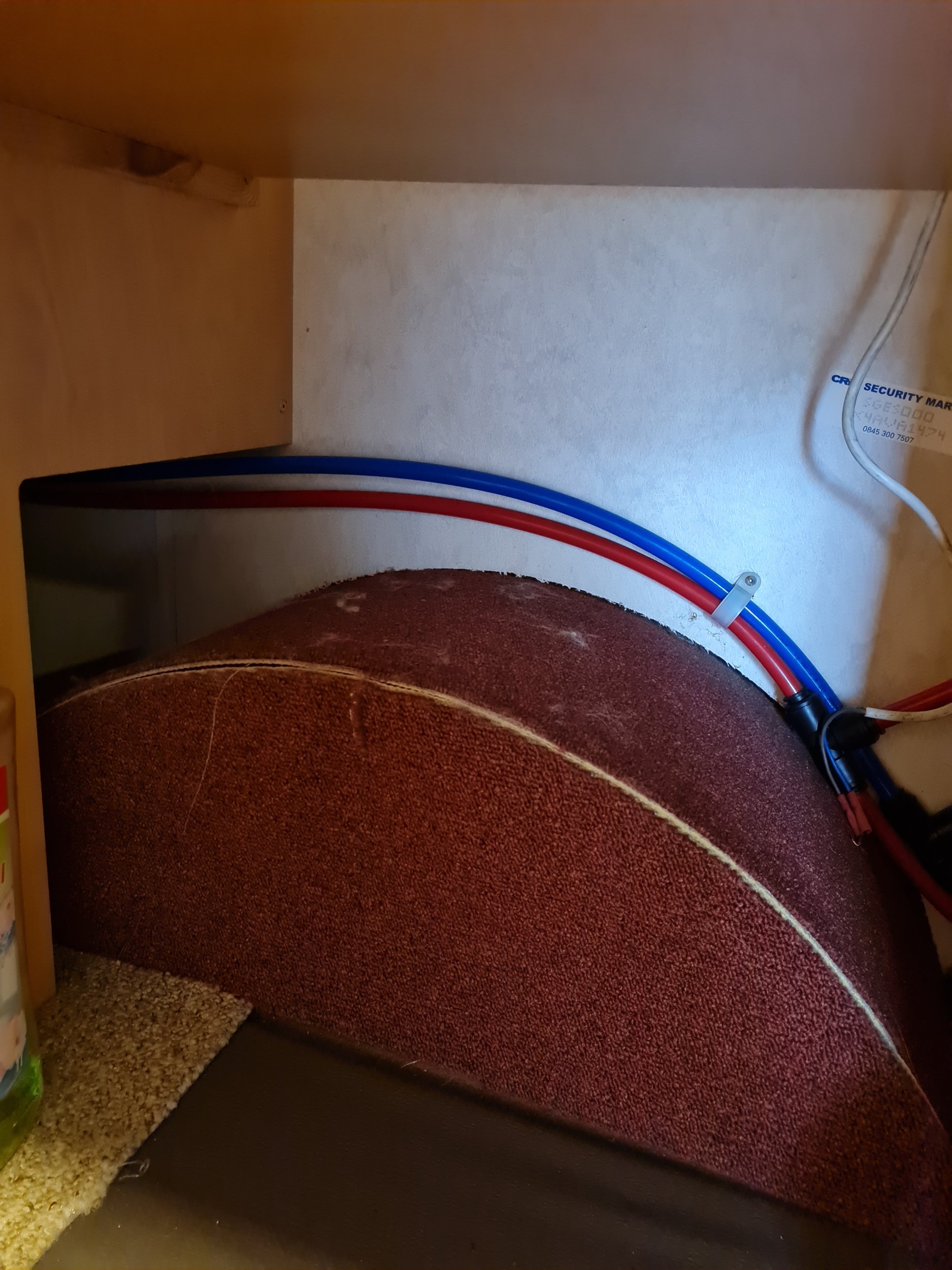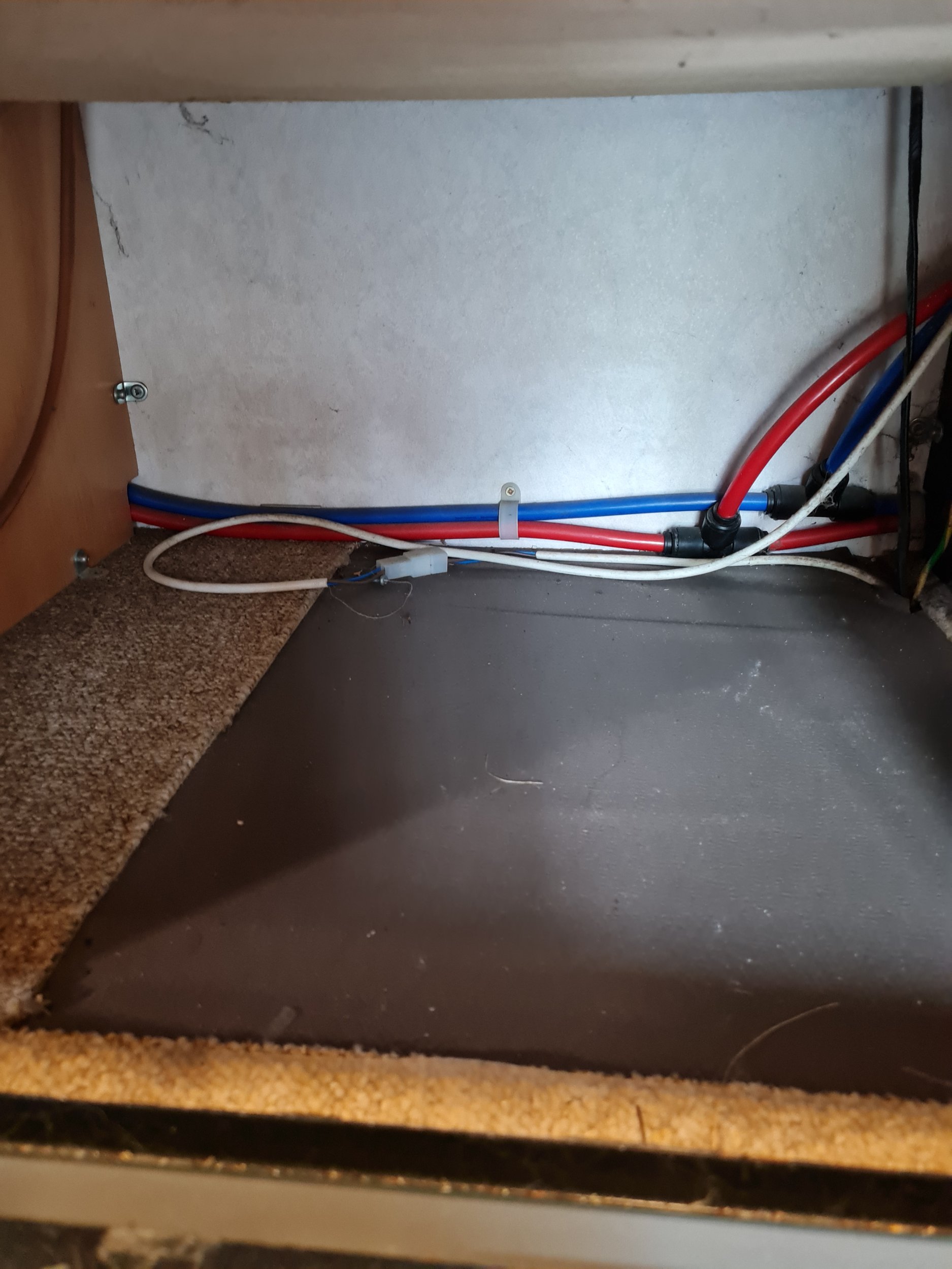 Boileri (15L) pagaldamine haagissuvila diivani alla. Võimalusel saab kasutada olemasolevat torustikku. Vesi tuua haagisesse elamu kastmisvoolikust.