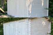 Põhivärv ja kontrastvärv katuseservadel, aknaraamidel ja vundamendi äärel jäävad samaks. Vajalik pinna ettevalmistus (lahtikoorunud värvi eemaldamine, pinna puhastus) ning 1 kordne värvimine pintsliga.