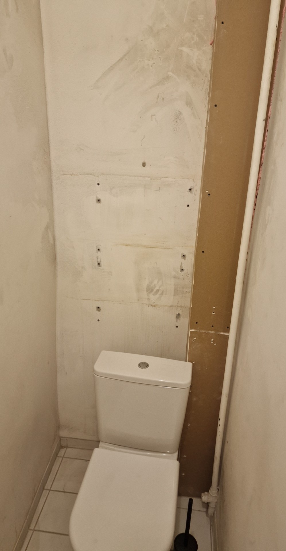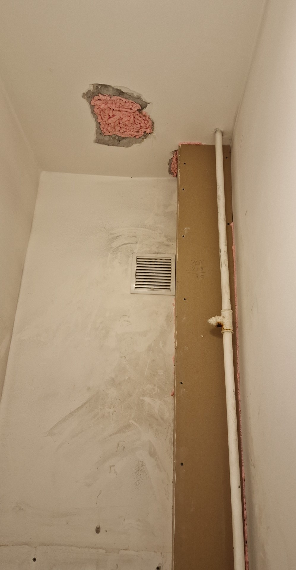 Pärast kanalisatsiooni toru vahetust tarvidus pahteldada-värvida uus karbik. Laes olev auk täita ja pahteldada. Hiljem laed -seinad valgega korralikult katta.