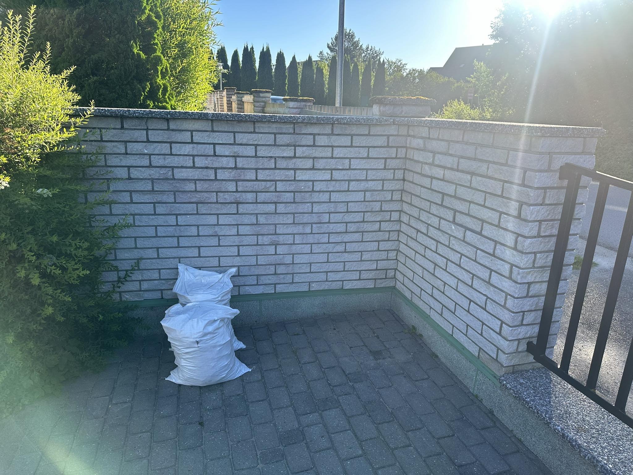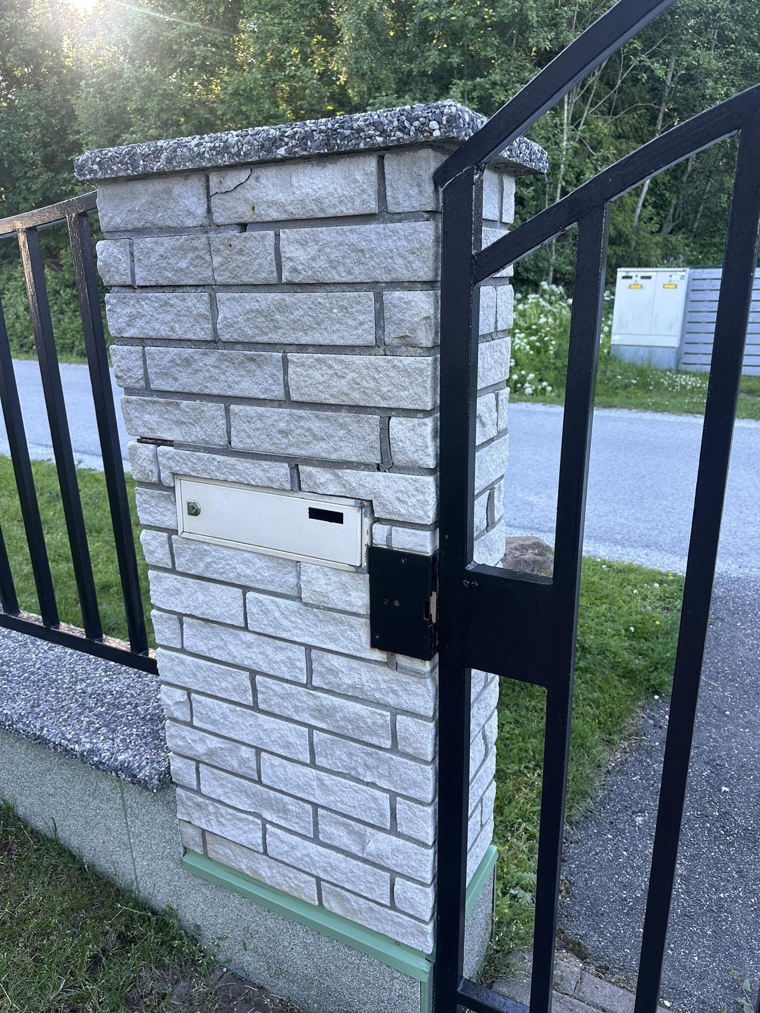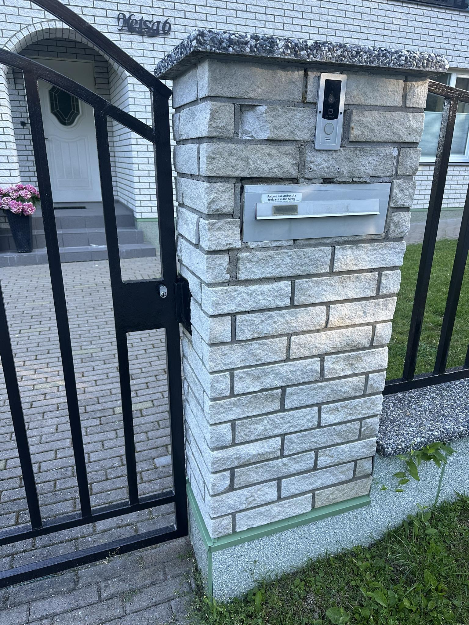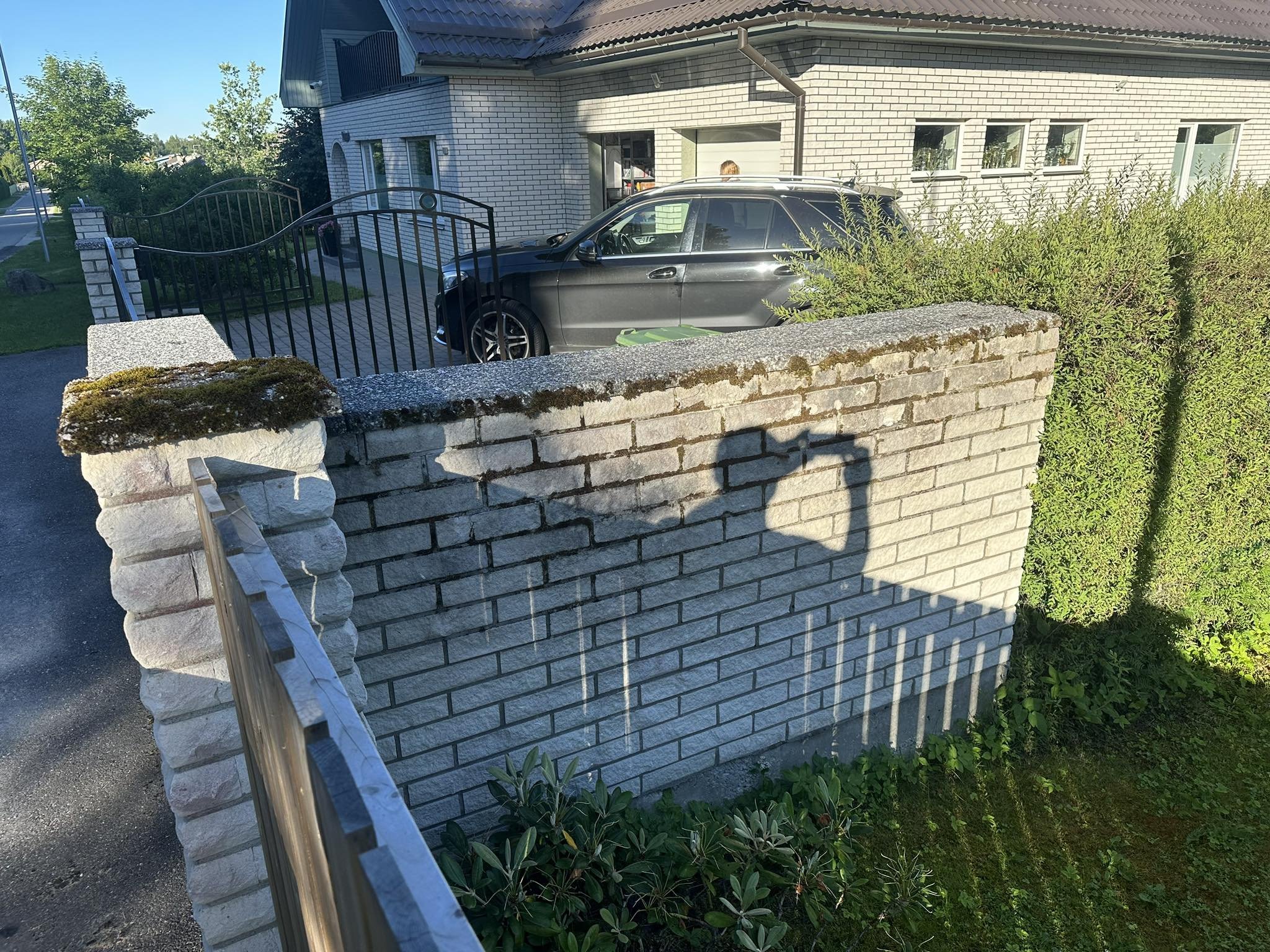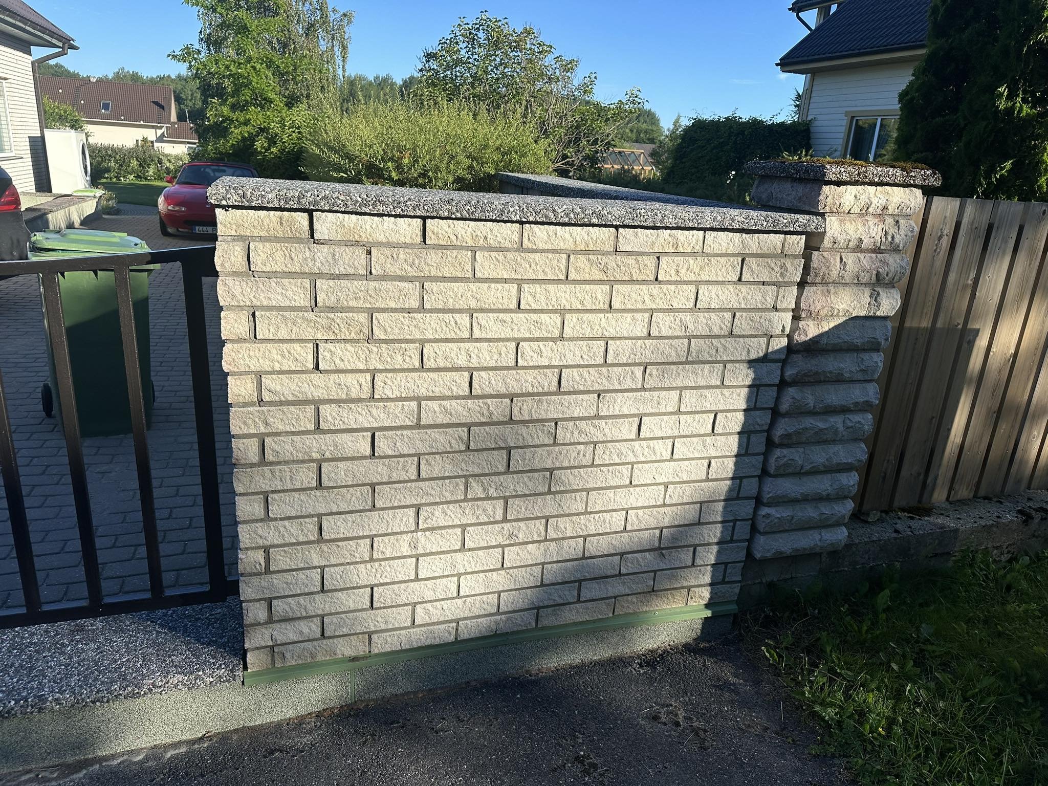 Vaja lahti võtta ja uuesti üles laduda aia nurk ja üks post. Kasutatud on murtud kivi. Materjali tarne ja vana kivi äravedu tegija poolt.