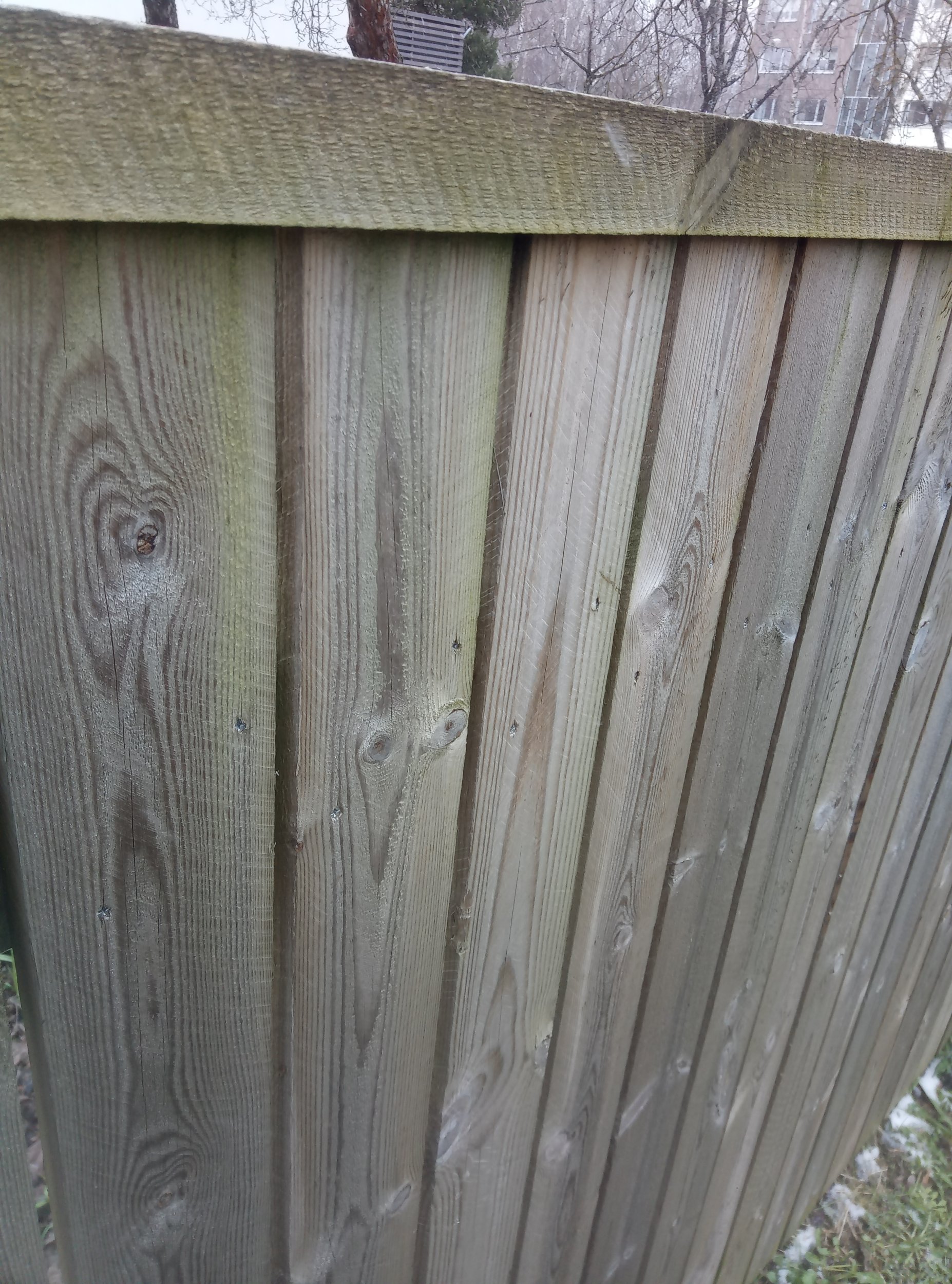 Puitaediku lippide värvimine. Aediku pikkus 32m. Kõrgus 150cm. Pinotex Extreme lasur. Värvus: Tavaline tamm