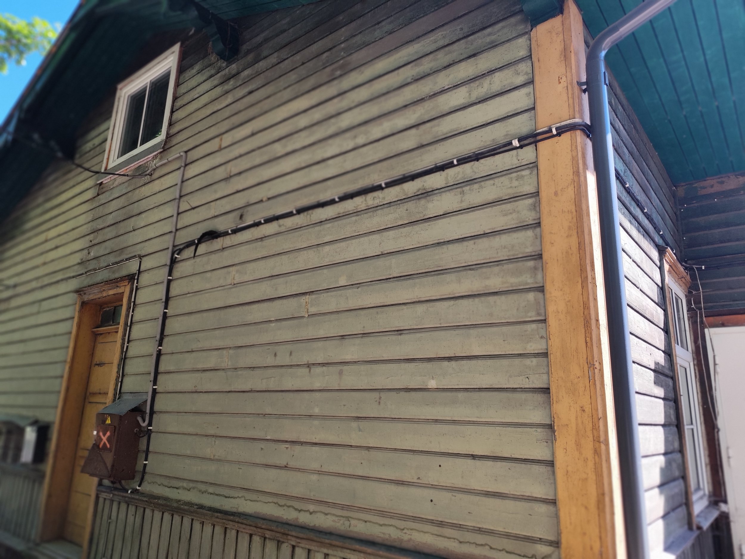 1. maja fassaadil olevad elektrikaablid (vist oli kolm kaablit) vaja eemaldada, mis hetkel paigaldatud ümber veranda (kui võimalik, siis elektrijuhtmed vedada otse verandast läbi). Elektrikaablid vaja lühemaks teha ja maja välisküljel olevasse elektrikappi tagasi ühendada. Samuti vaja paigaldada välitingimustesse sobiv elektrikapp koos kaitsmetega. Majas kokku 5 korterit.