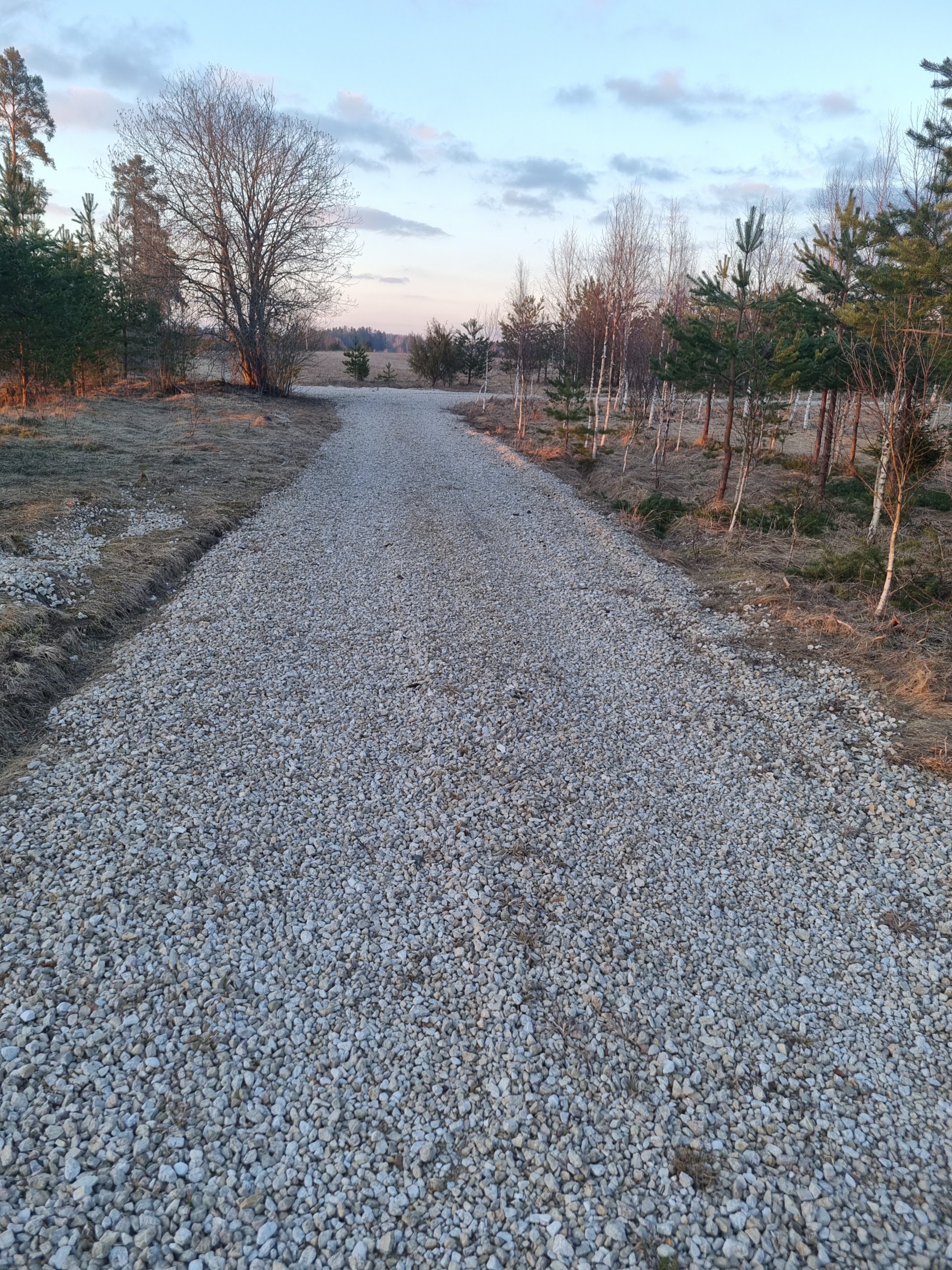 Soovime eramaja juurde viiva tee katta kõvakattega. Kaks aastat tagasi on teele tehtud korralik alus ja kaetud killustikuga. Nüüd oleks natuke vaja killustik üle siluda, sest mõnes kohas on rattajäljed sisse vajunud ja kild natuke ebatasane. Päris asfalt läheks liiga kalliks aga nö vaese mehe asfalt oleks ehk hea variant. Lihtsalt tahaks teha tee selliseks, et need lahtised killustikukivid kogu aeg ei veereks ja talvel lund lükates kogu kild tee äärde ei kuhjuks. Tee pikkus on 300 meetrit ja laiuses teeks 3 meetrit, seega kokku 900m2. Kui lõpuks mõni m2 rohkem või vähem tuleb, siis saab seda lõpphinna maksmisel ümber arvestada.