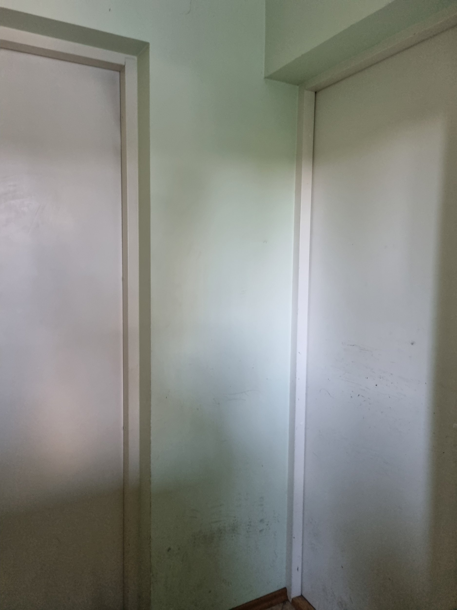Väike esik, kus seinad oleks vaja üle värvida ja eelnevalt mõned kohad ka pahteldada.