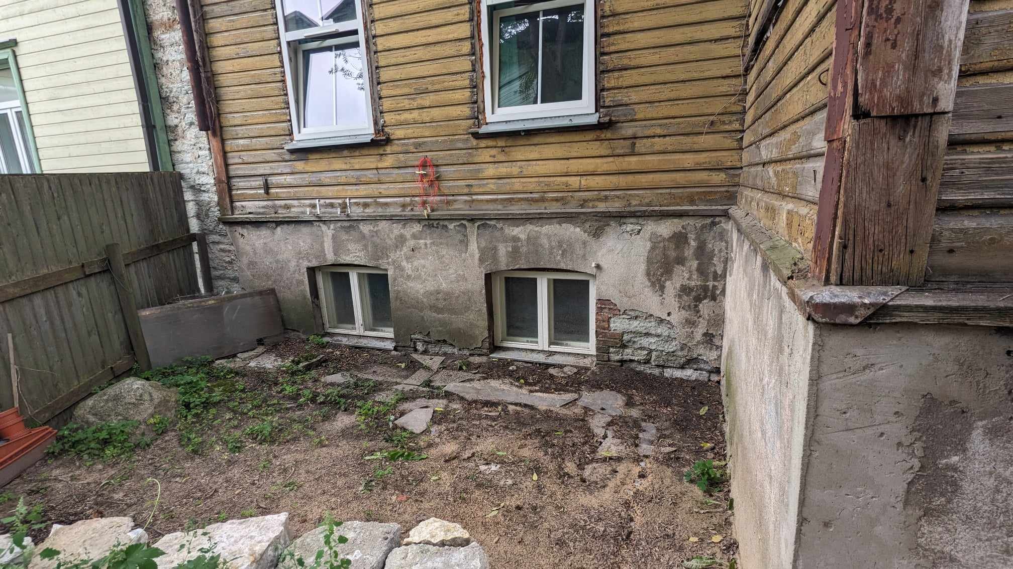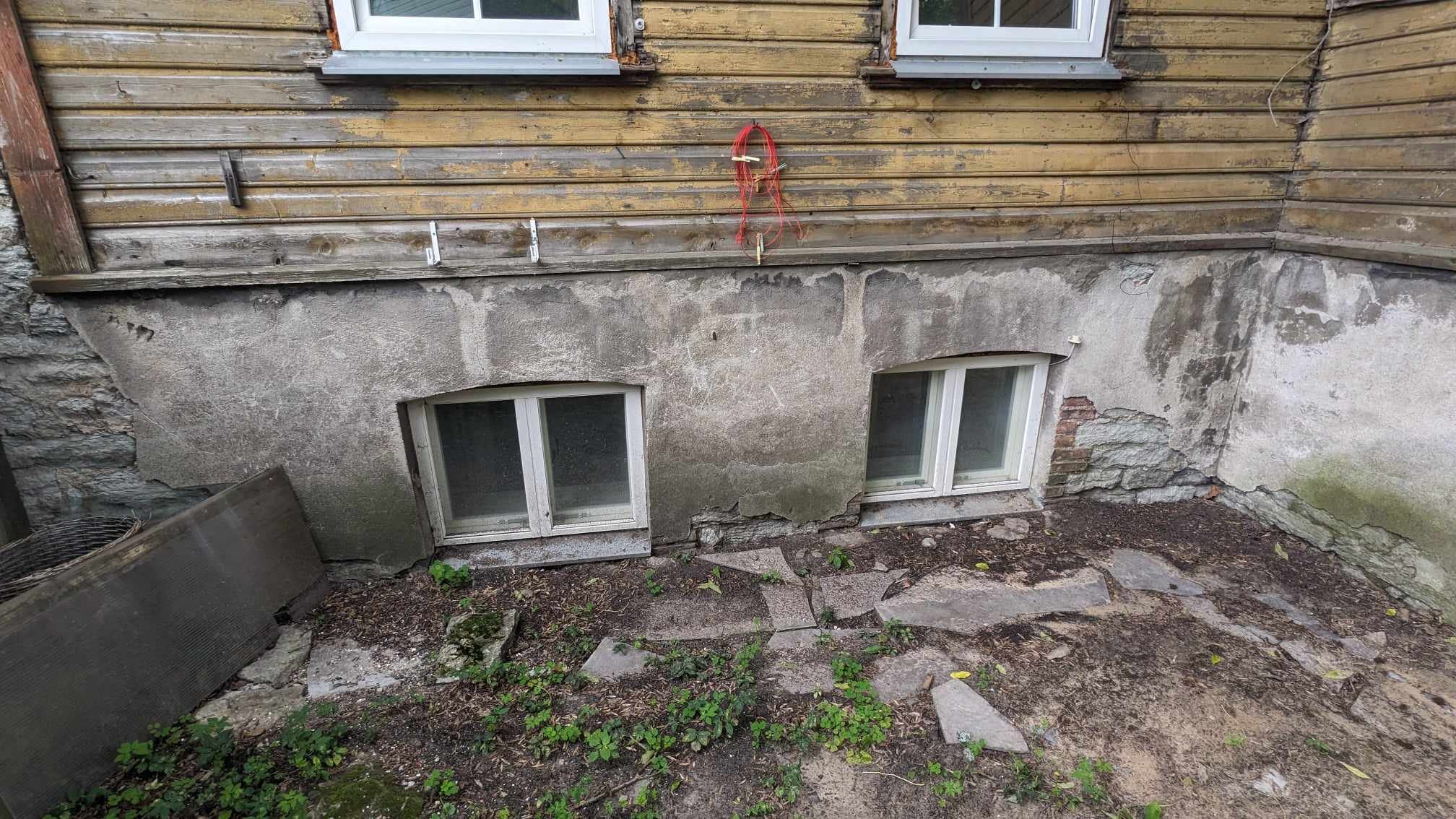 Vaja teha maa-aluse osa hüdroisoleerimine ja soojustamine, et niiskus ja külm ei tuleks läbi seina keldrikorterisse. Lisaks perimeetri betoneerimine väikse kaldega ning ca poole meetri laiuselt. Vundamendi maapealse osaga ei pea hetkel midagi tegema. Seinaosa pikkus ca 5,5m. Ligipääs kopaga on keeruline/võimatu.