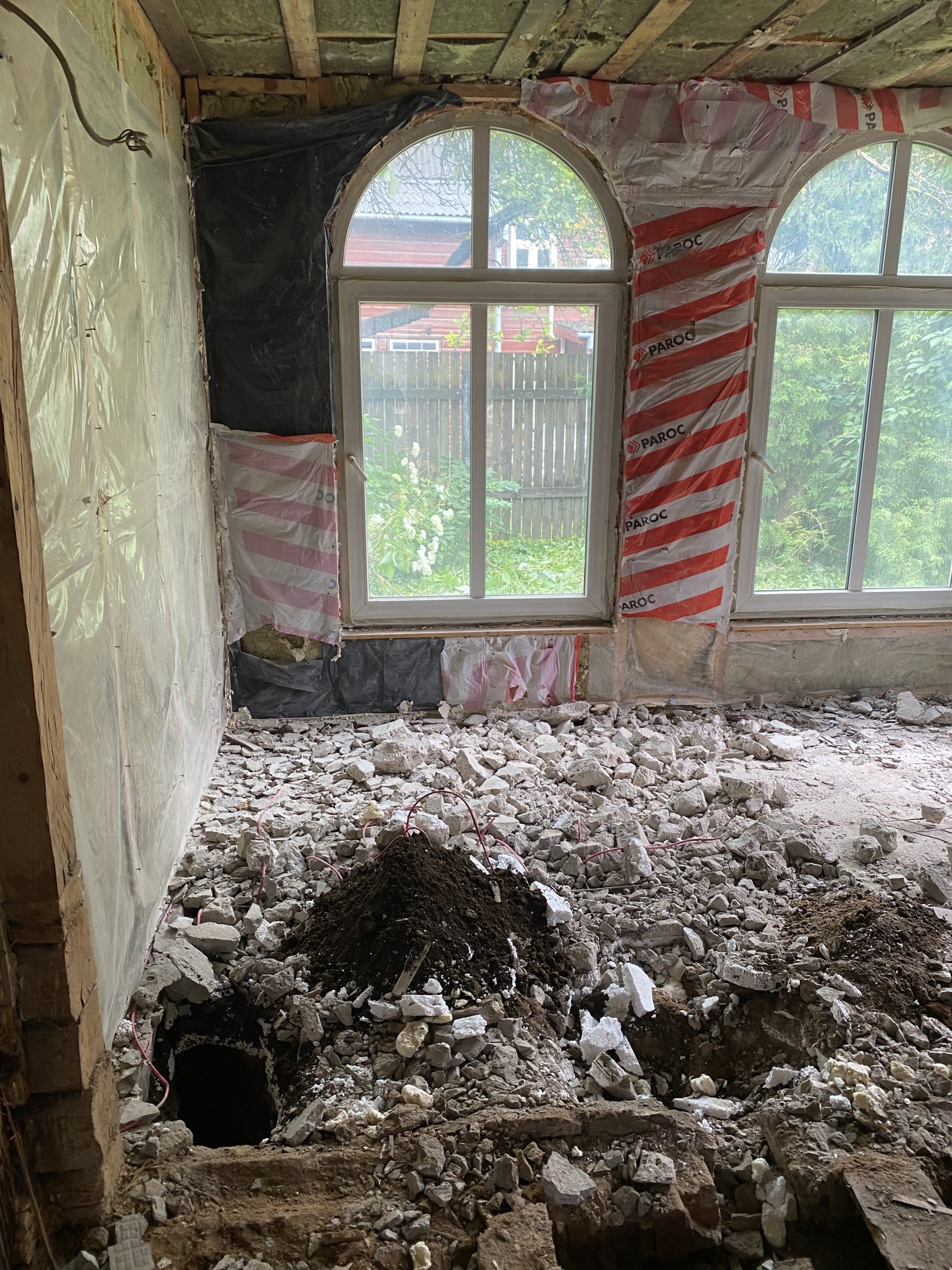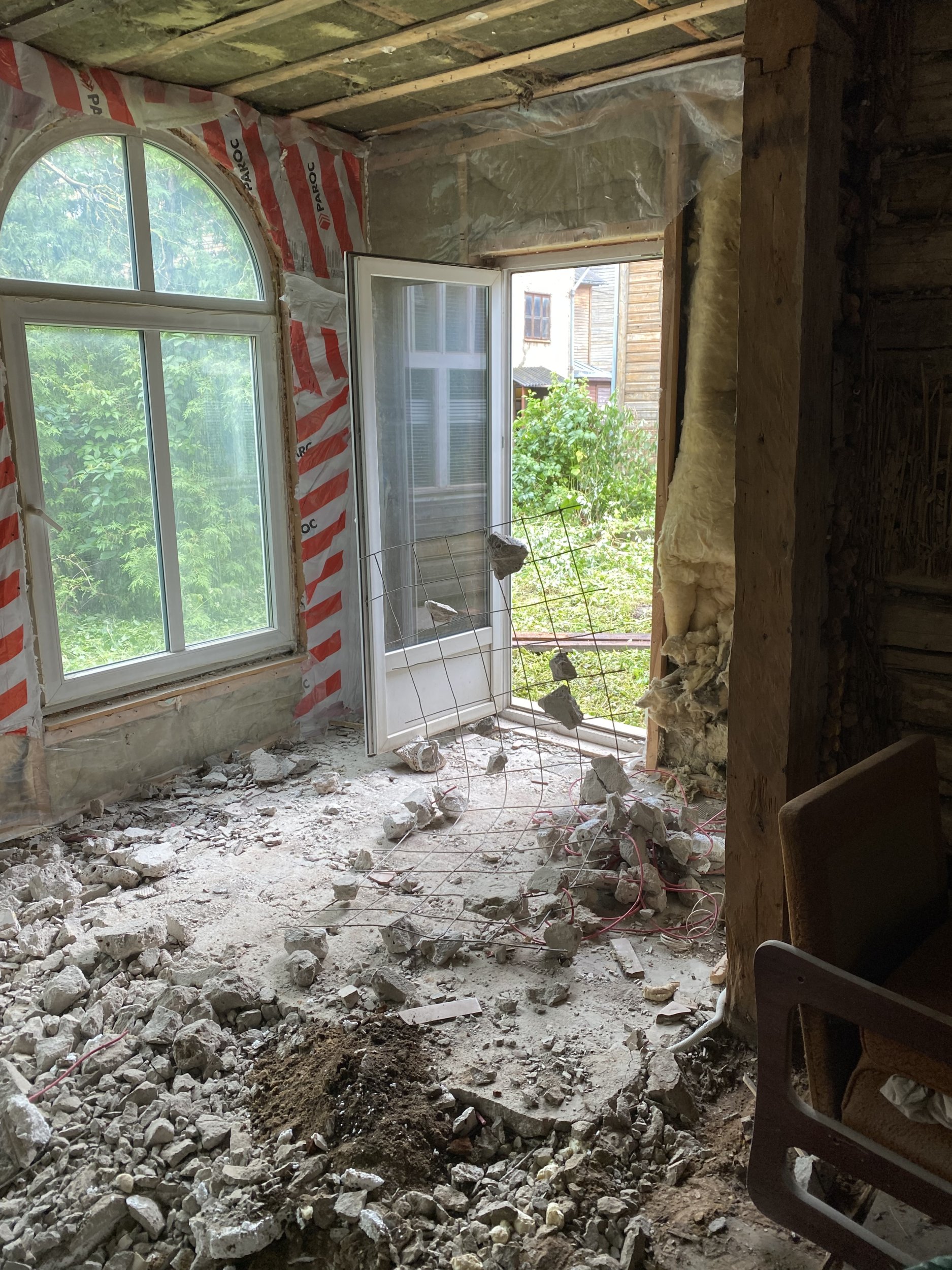Võib kaaluda, et lammutada kaarakendega seinaosa, et majja pääseda väikesema minilaaduri vms masinaga.