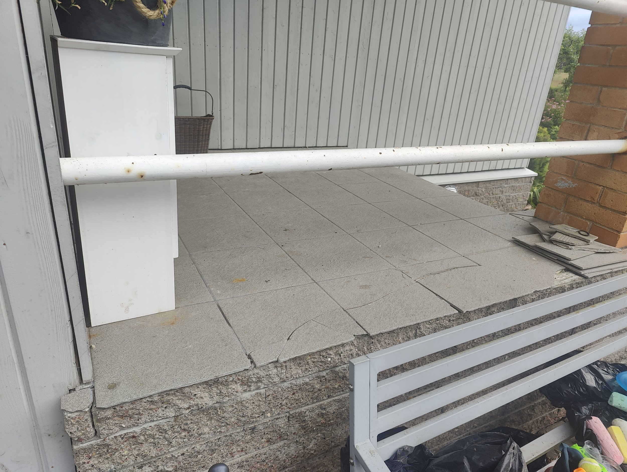 Olemasolevate plaatide eemaldamine, aluspinna ettevalmistus ja vedelplastiga katmine. Viimistluskihina peenem hallikas graniidipuruga. Sisse sooviks splaate jäljendavat mustrit (30x30 cm ruudustik).