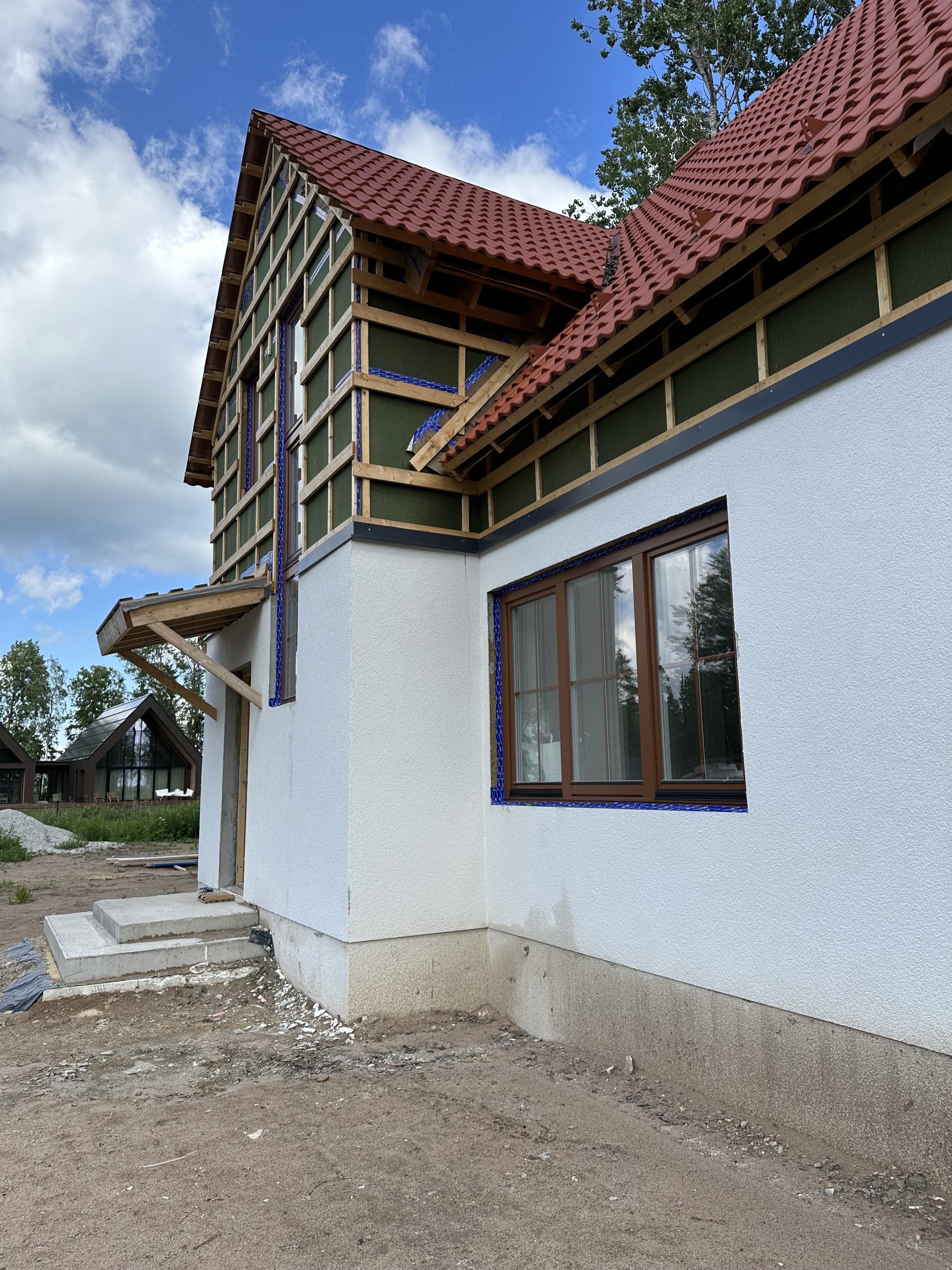 Vaja püstise välisvoodrilaua paigaldust ja tuulekastide ehitust. Roovitus on rihitud, aga tuuletõkketeip vajab mõnes kohas uuendust (mastiksiga väljavahetamist). Võite teha pakkumise koos või ilma materjalideta.