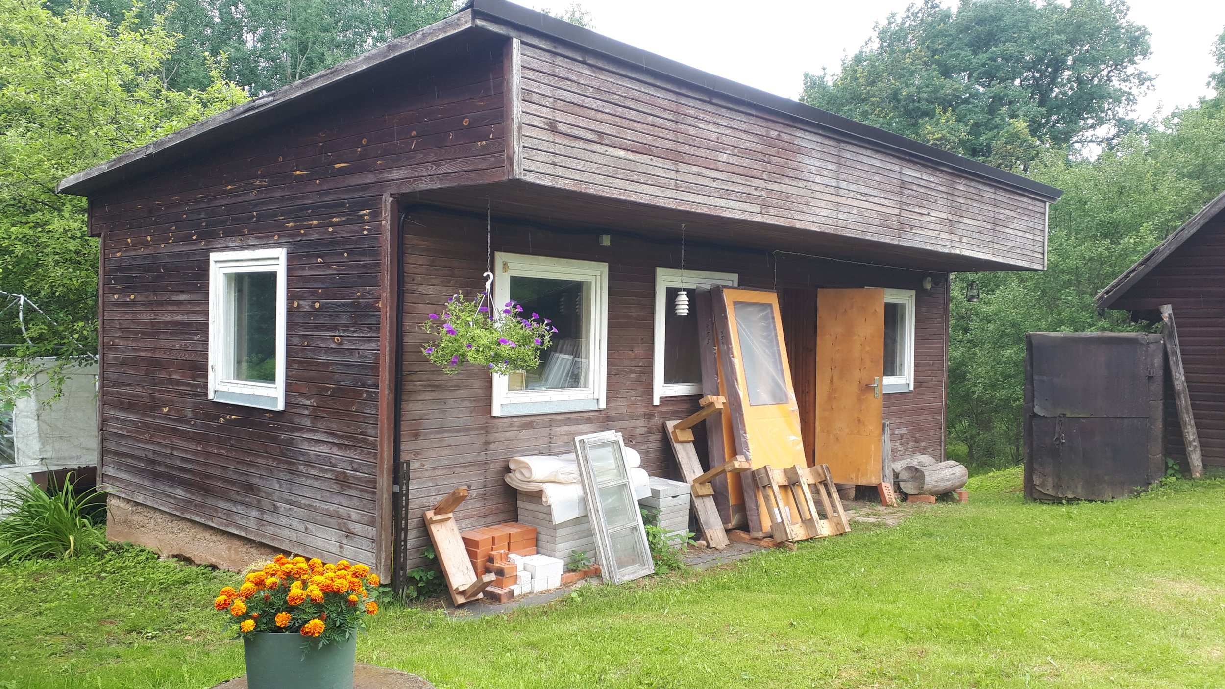 Eemaldada vana vooderdis, soojustada 10cm villaga, tuuletõke, uus puitvooderdis (tellija materjal). Seina sisse on vaja teha ukseava. Eemaldada katus, eemaldada soojustus (?), vajadusel asendada sarikad, uus soojustus, uus katus (ruberoid).