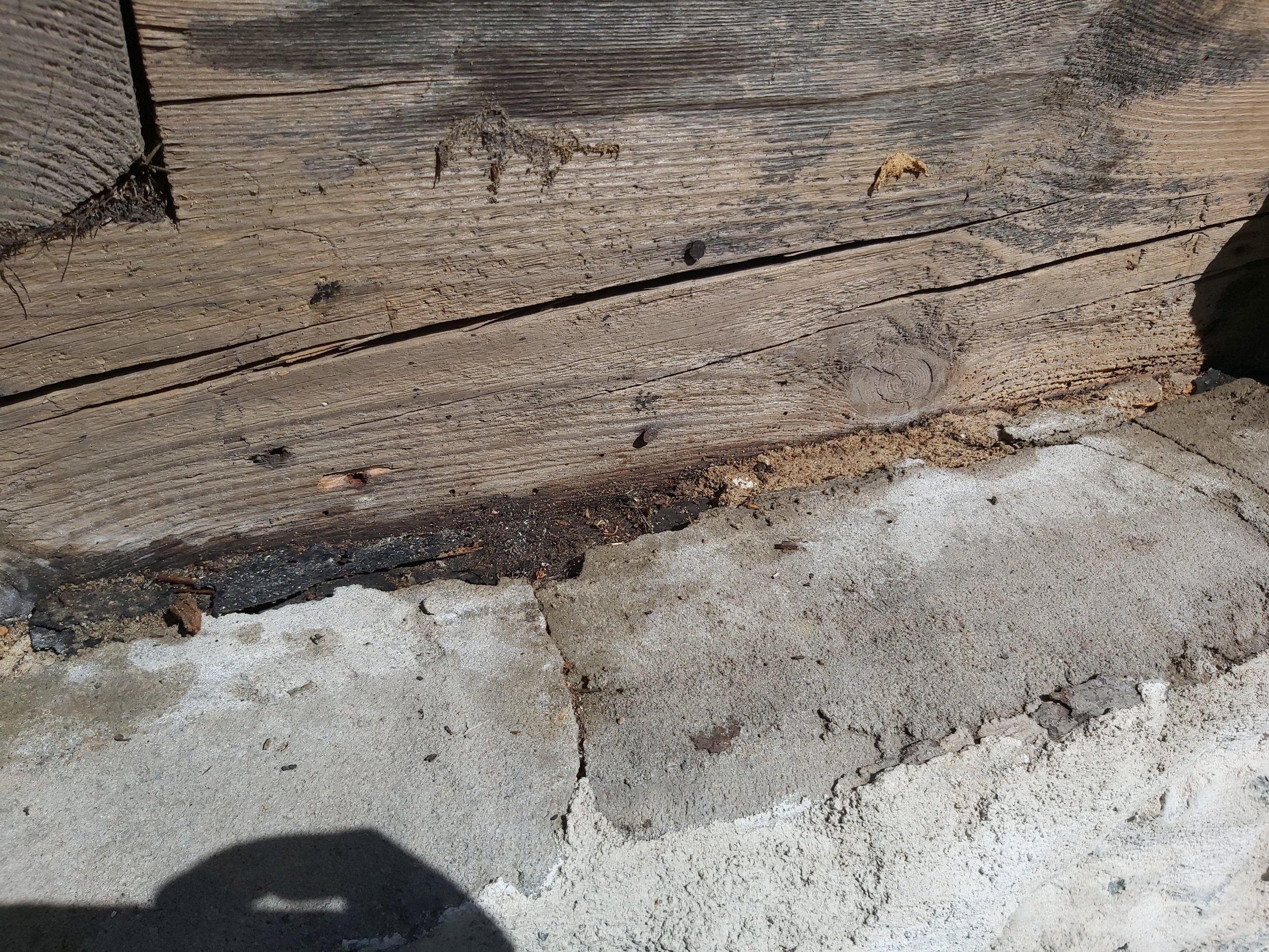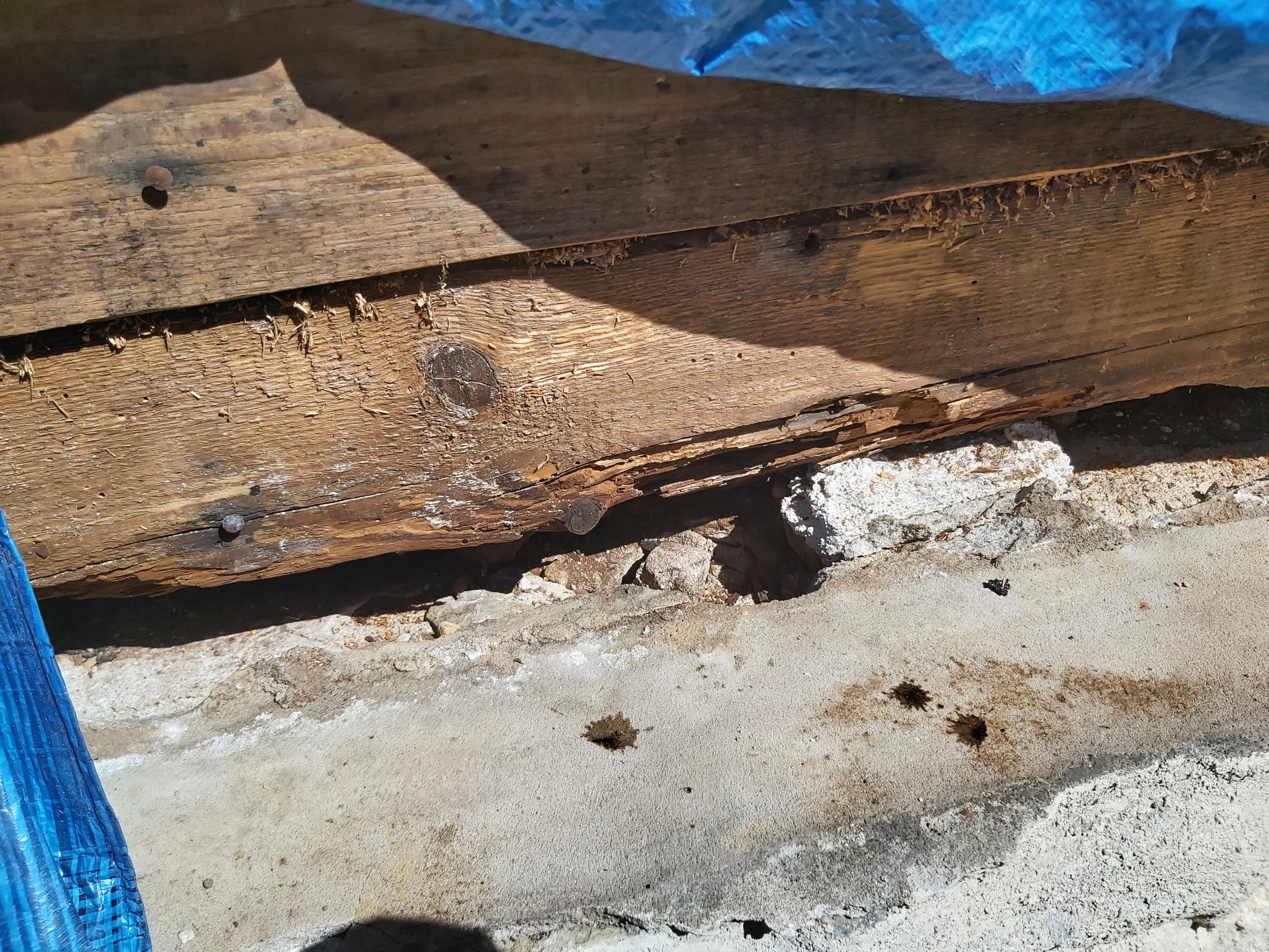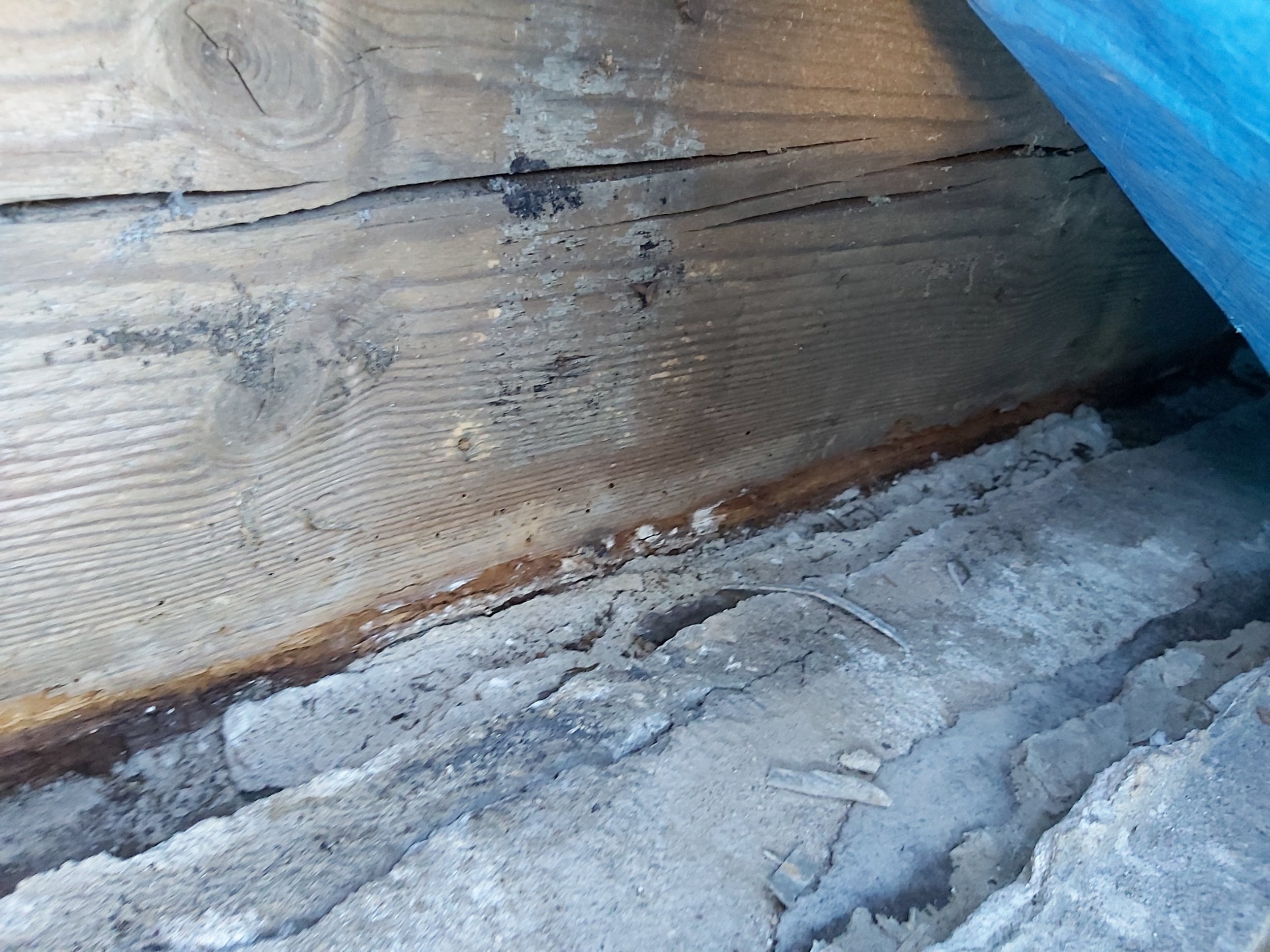 Kogu perimeeter vajab tegemist. Mõned lõigud on 1cm, mõned 3-4cm kahjustusega, mõnelt poolt on palk üsna kutu. Teisele palgireale pole kahjustus roninud. Maja põhjapoolne külg on saanud rohkem kahjustusi - alumine palk on üsna suurte kahjustustega. Läänepoolne palgirida on kõige viisakam. See osa, millele toetub karkassi osa majast, on samuti probleemne. Kahjustusi on mujalgi, kuid primaarne on alumine palgirida. Nendest teistest kohtkahjustustest räägiks koha peal, sest üht-teist saan ka ise ära teha, aga alumine palk on minu jaoks kriitiliselt tähtis.