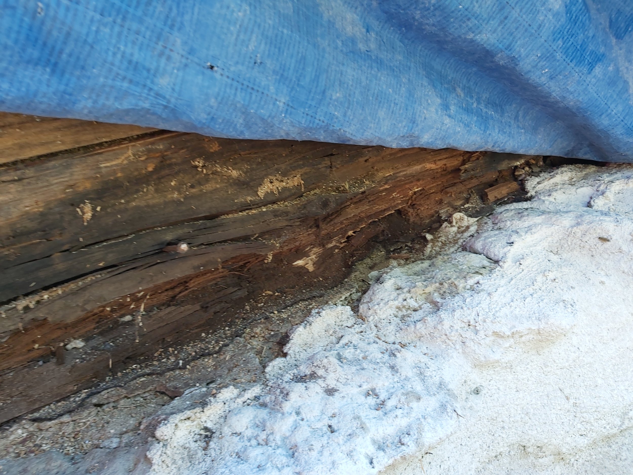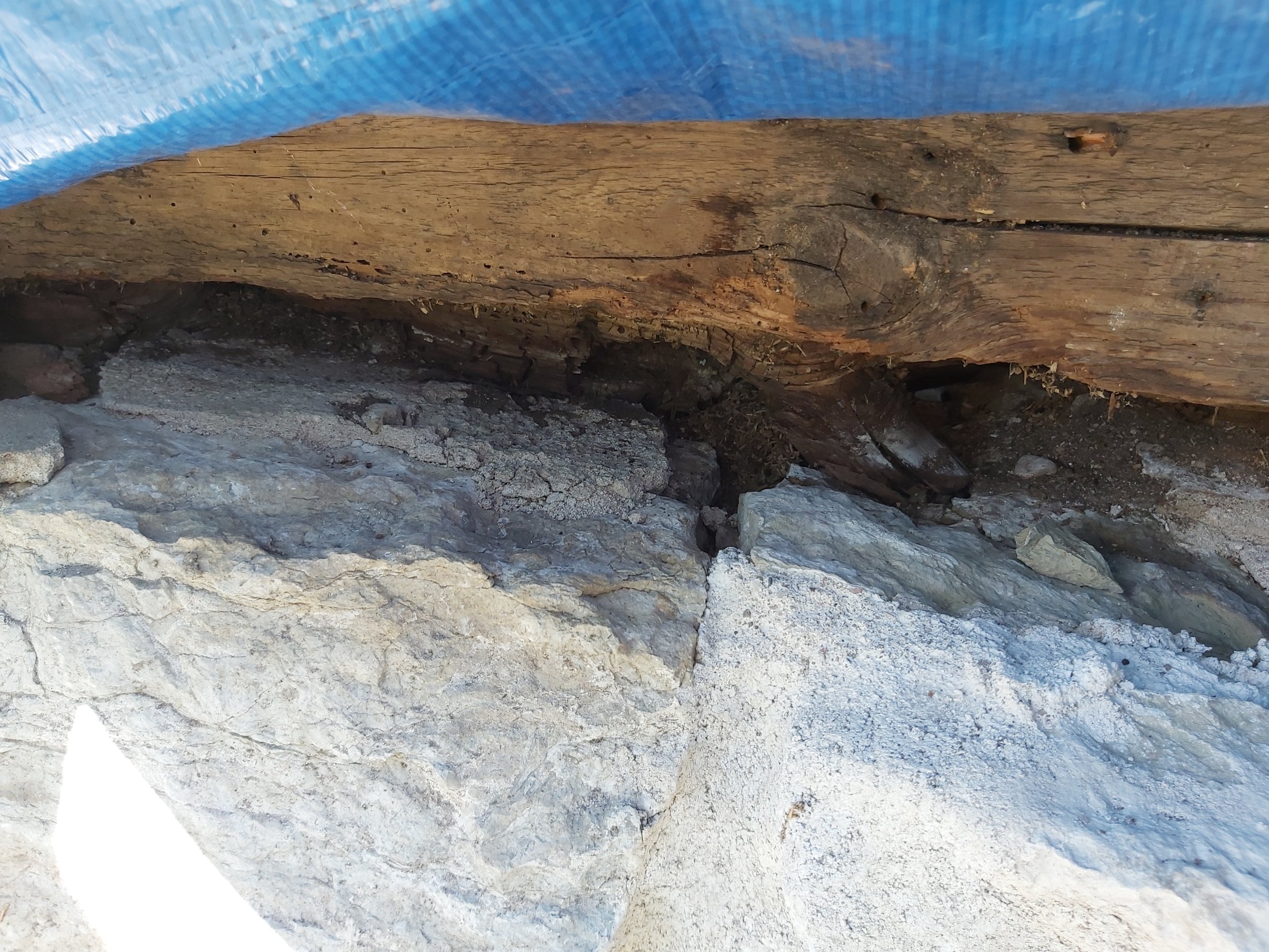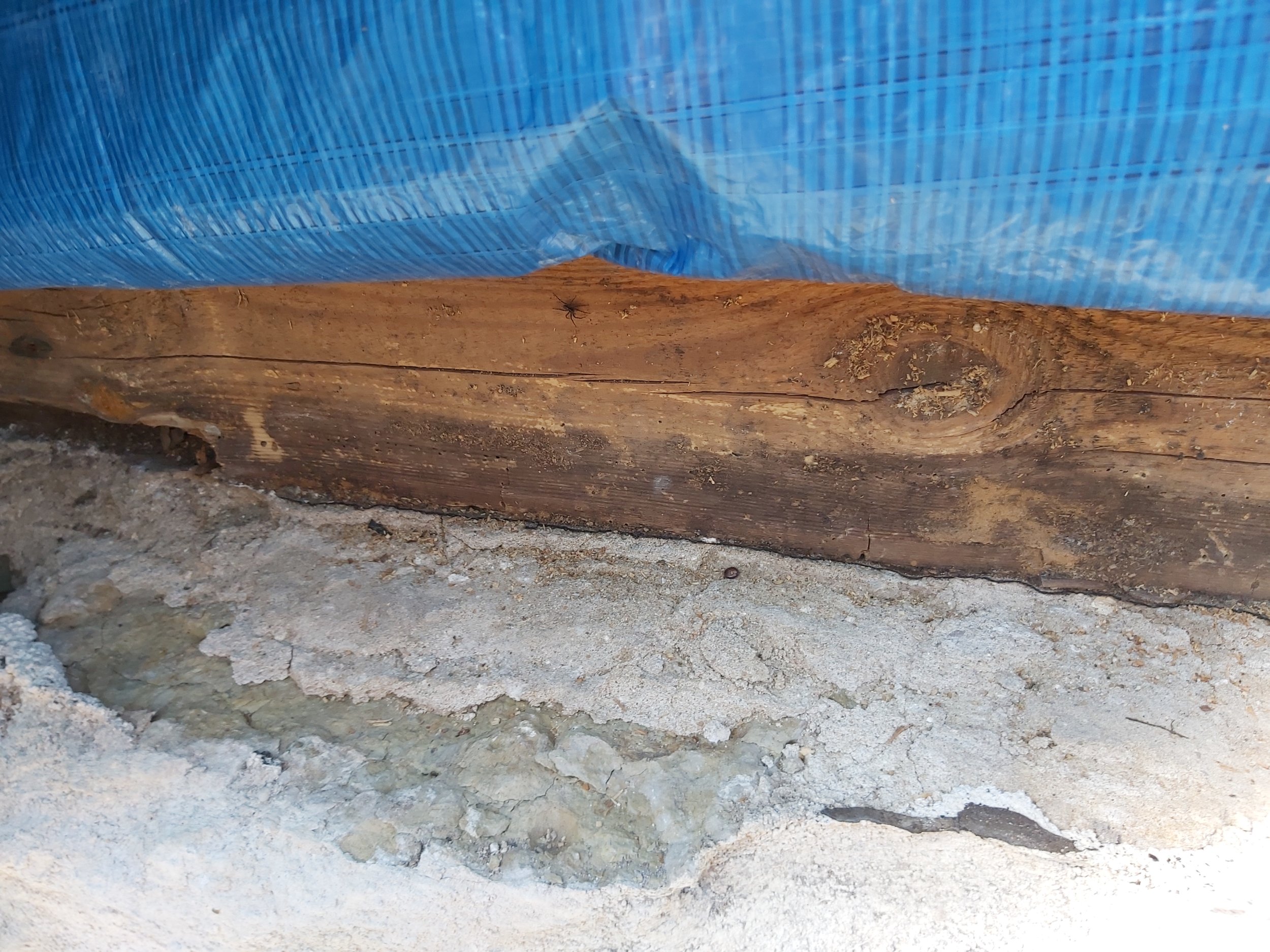Kogu perimeeter vajab tegemist. Mõned lõigud on 1cm, mõned 3-4cm kahjustusega, mõnelt poolt on palk üsna kutu. Teisele palgireale pole kahjustus roninud. Maja põhjapoolne külg on saanud rohkem kahjustusi - alumine palk on üsna suurte kahjustustega. Läänepoolne palgirida on kõige viisakam. See osa, millele toetub karkassi osa majast, on samuti probleemne. Kahjustusi on mujalgi, kuid primaarne on alumine palgirida. Nendest teistest kohtkahjustustest räägiks koha peal, sest üht-teist saan ka ise ära teha, aga alumine palk on minu jaoks kriitiliselt tähtis.