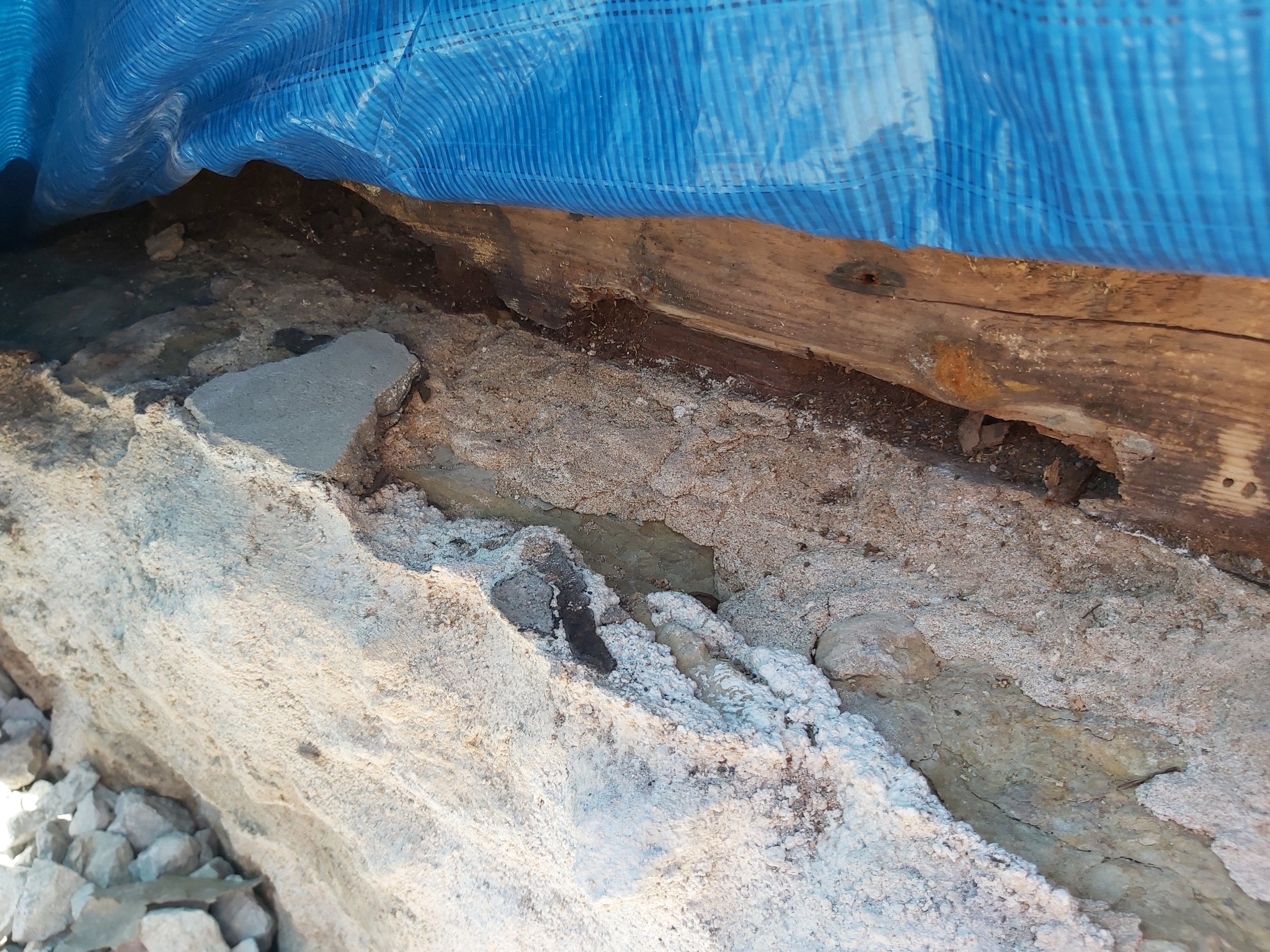 Ilmselt vaja ka vundamendi tasandusakihiga tegeleda, sest pidev niiskuse ligipääs on lubimördiga tehtud vana tasanduse pudedaks muutnud. Vundamendiga on osaliselt tegeletud, kuid palgi alt on paksult valatud lubimört haiget saanud.