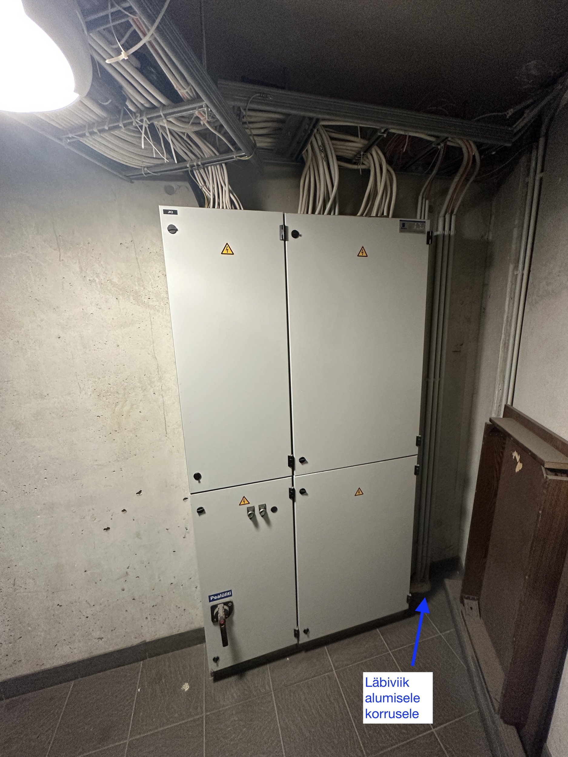 Elektrikilp on -1 korrusel, mille kõrvalt saab puurida(hetkel läheb sealt ka ports juhtmeid) otse alla -2 korrusele. -2 korruselt saab siis juba juhtme vedada kaablitoru kasutades laest kuni minu parkimiskohale. Teepeale jääb veel üks tulekindel sein, milles tuleb läbi puurida.