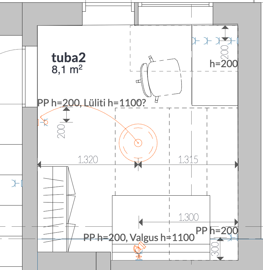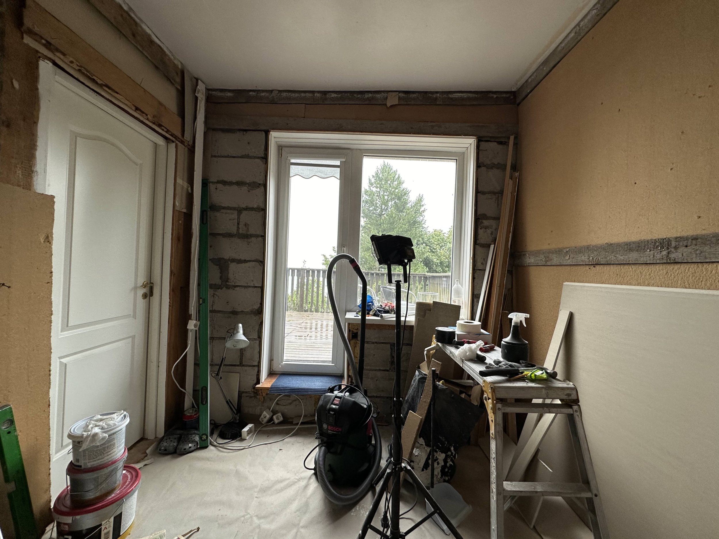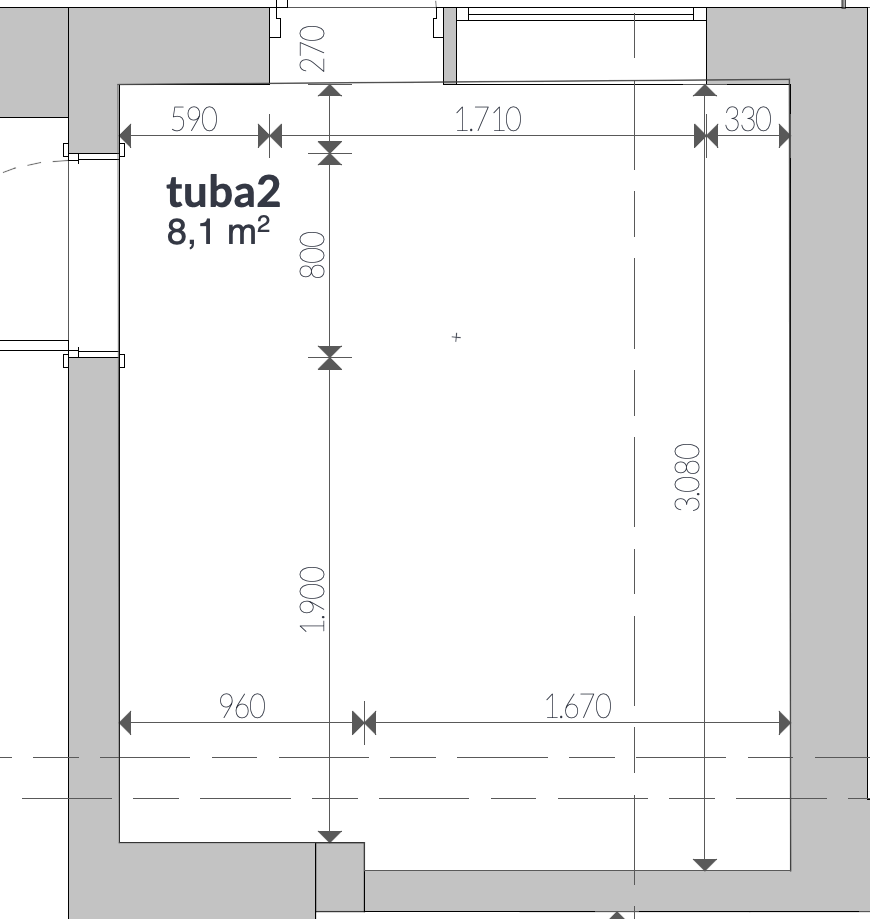 Tuba on väike 8,1m2, ehitatud 80ndatel, põrandal ehituspapi all on renoveeritud laudpõrand. Varem olid seinad kaetud laudisega. Lõpptulemusena peaks ruum olema viimistletud lubikrohviga ja veetud ning paigaldatud uued pistikupesade ja lülitite asukohad.