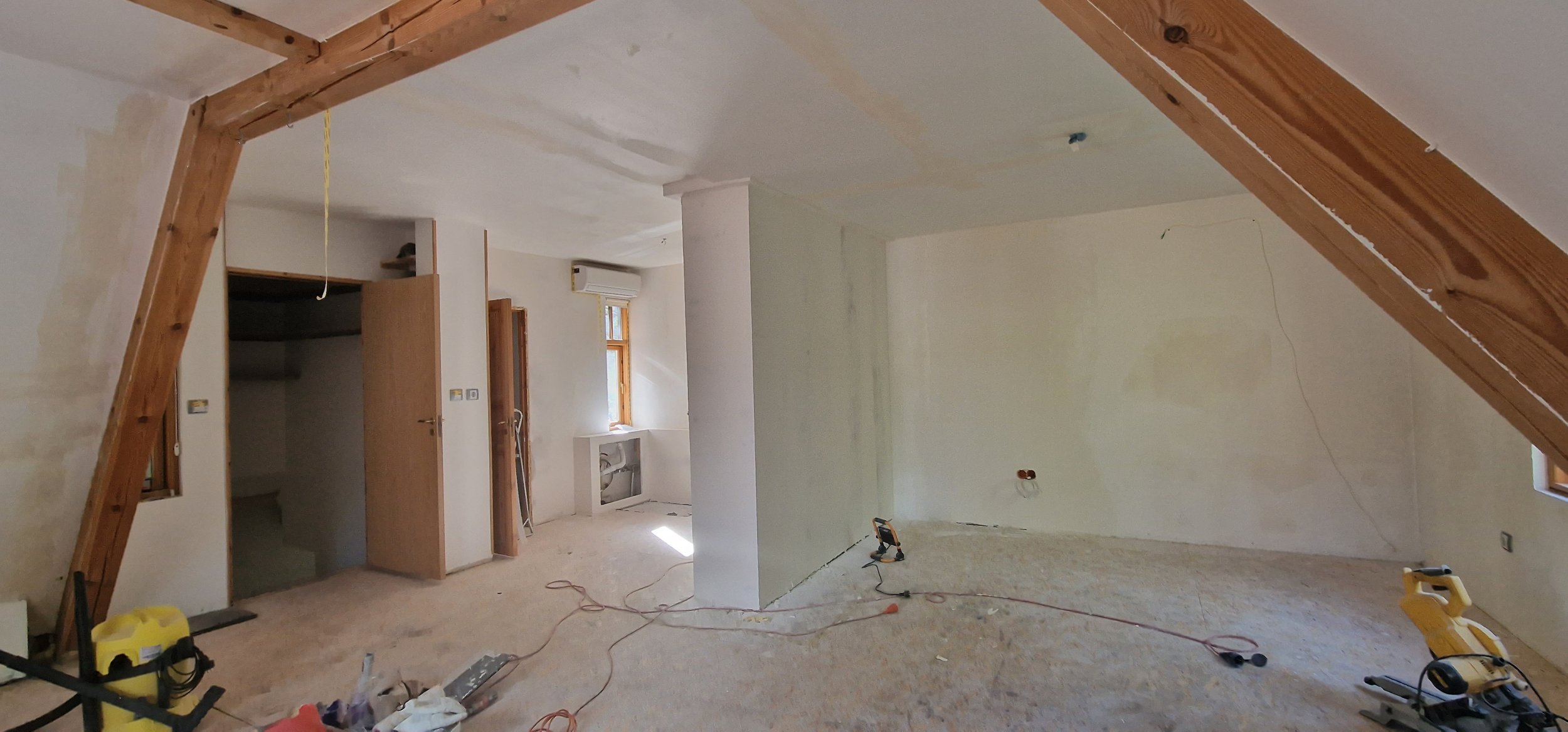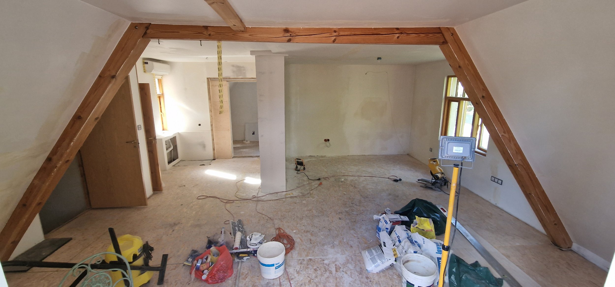 Oleks vaja pooleli jäetud siseviimistlustöö lõppuni viia, valmistada pinnad ette värvimiseks: pahteldada/lihvida. Ruumi pindala ca 45m2