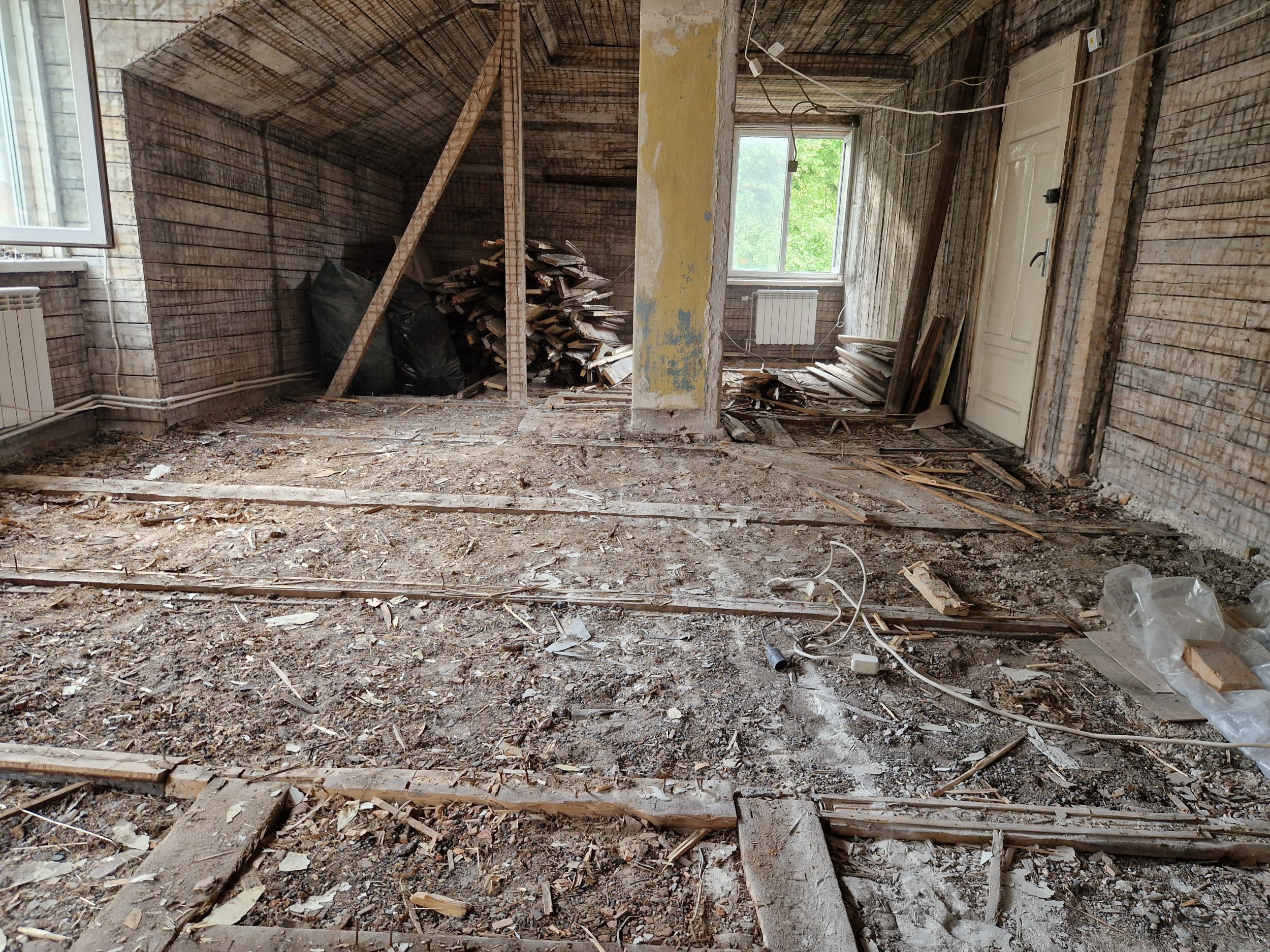 Põrandatööd puitkonstruktsiooniga maja 45,1 m2 kolmanda korruse korteris. Korter asub Tallinna kesklinnas. Põrand on taladeni avatud. Talade samm 80 sentimeetrist enam kui ühe meetrini. Talade vahel šlakk.