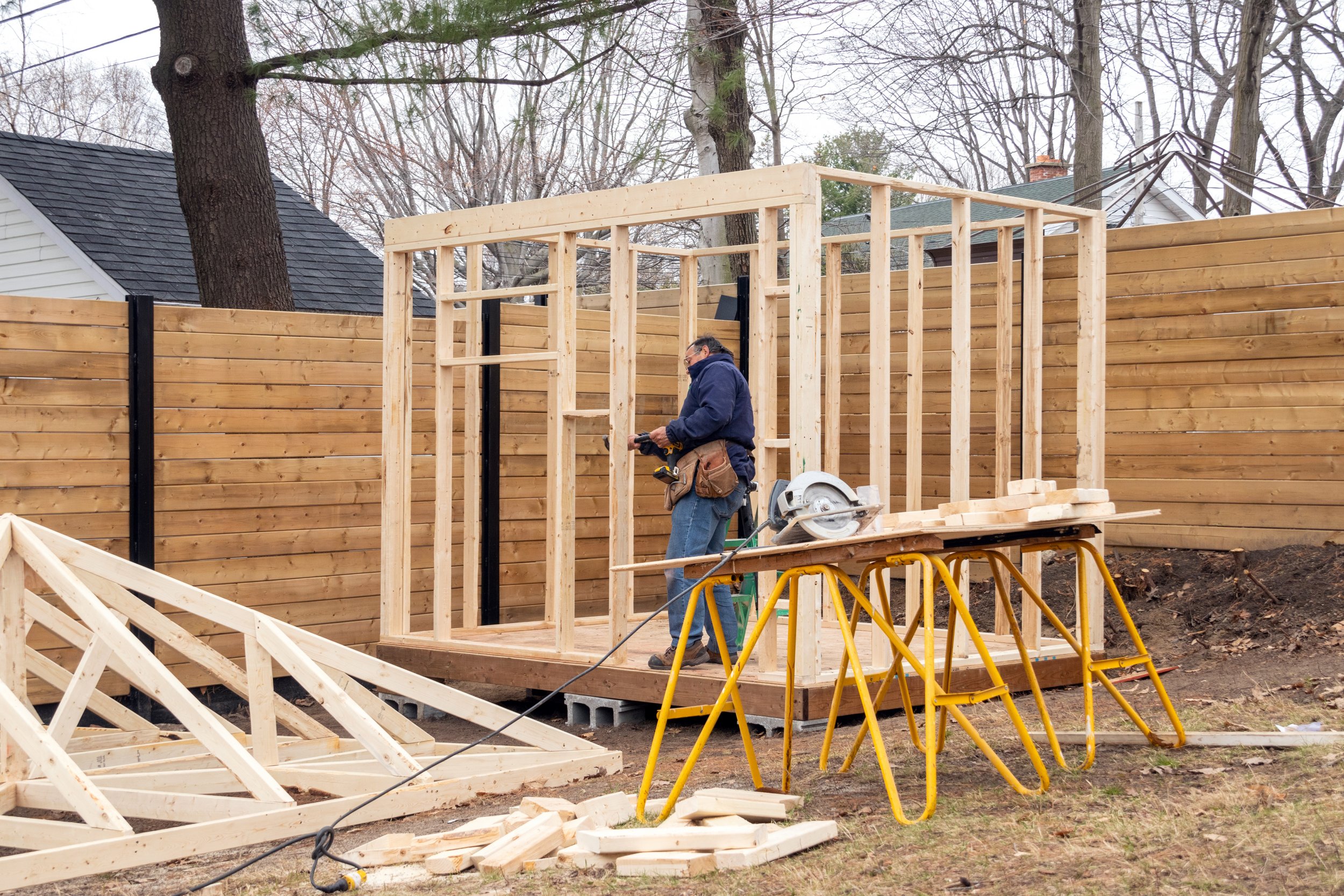 Kui seinaraamid valmis, tõsta need vundamendile paika ja lisa igasse nurka ka tugitala, mis suurema osa kuuri raskusest enda peale võtab. Puidust raamide ühendamisel teineteise ja tugitalaga kasuta roostevabast terasest puidukruvisid. Vundament on enamasti valatud betoonist, mis tähendab, et kogu kuuri raamistiku peaks kinnitama vundamendi külge roostevabast terasest betoonikruvidega. Nüüd on sul vundament ja põrand valmis ning neli seina püsti. Loe ka: Millist vundamenti valida?