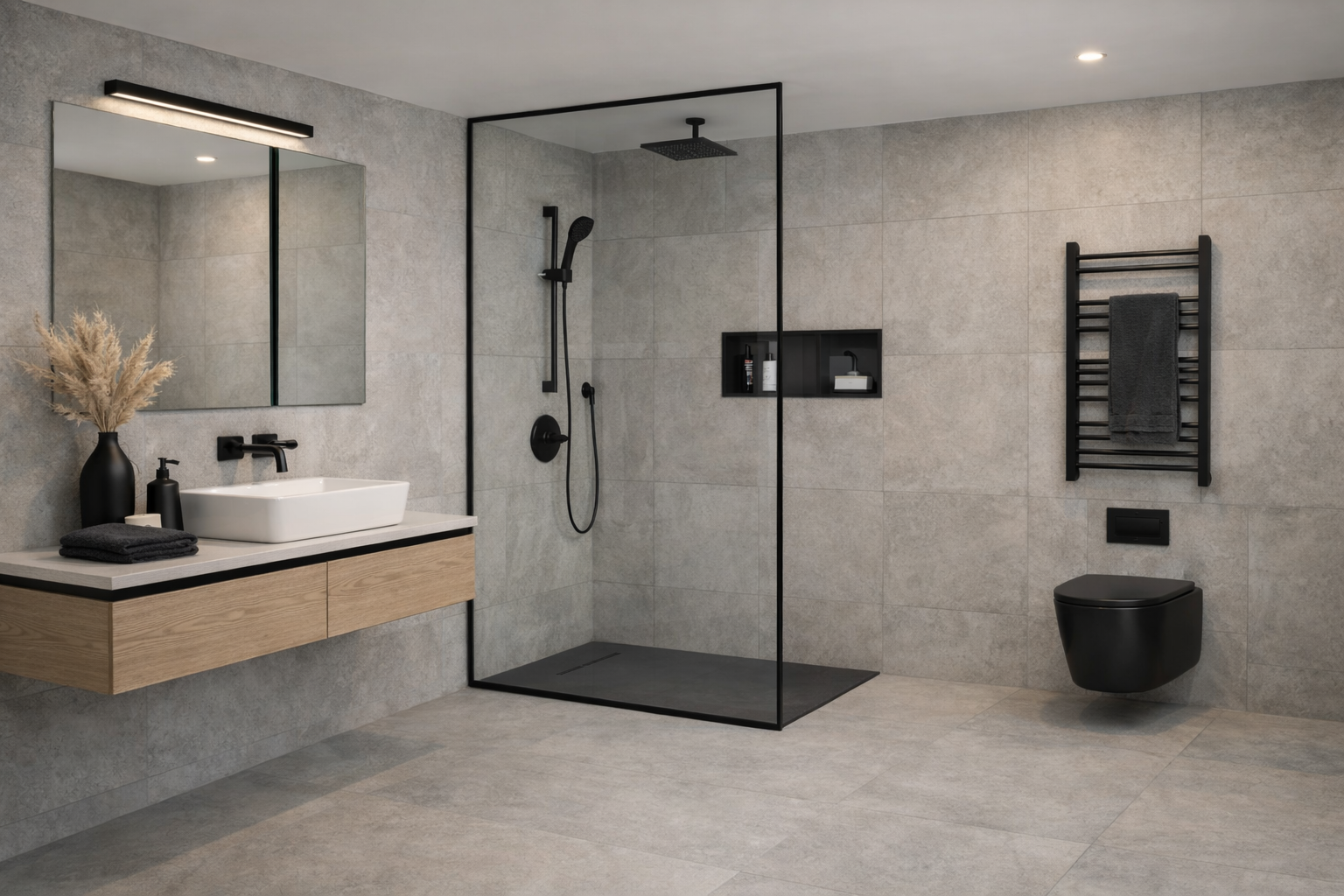 Matid ja mustad detailid on sellel aastal dušinurga üks püsivamaid trende, mis ei näita vaibumise märke. Must raam, mustad segistid ja mustad aksessuaarid lisavad selget karakterit ja visuaalset jõulisust, sobides suurepäraselt nii industriaalsete, loft-stiilis kui ka modernsete ja minimalistlike interjööridega. Must raam toimib vannitoas justkui arhitektuurse piirajana, rõhutades dušinurka kui eraldiseisvat disainielementi ning luues selge kontrasti heledate pindade ja neutraalsete toonidega.