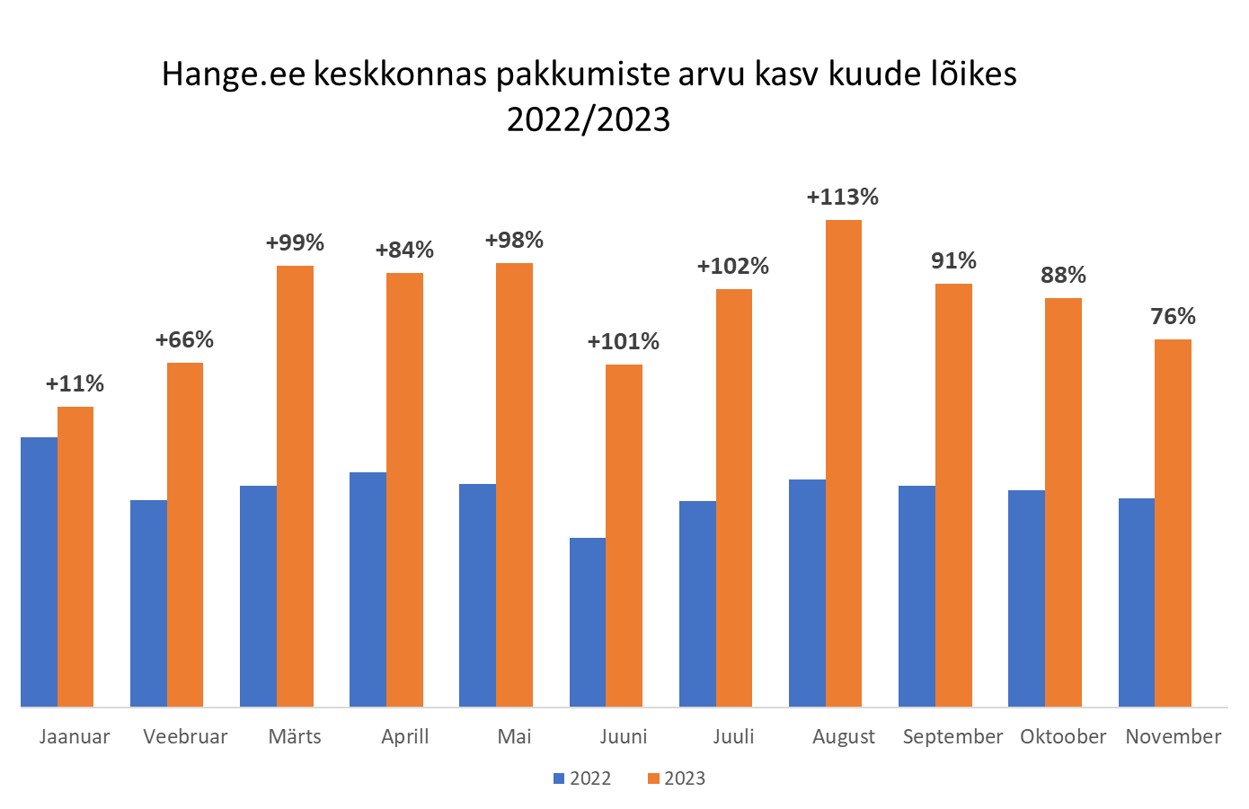 Hange.ee andmeid analüüsides paistab selgelt silma ehitusettevõtete osalus hangetel. Pakkumiste arv on võrreldes 2022. aastaga oluliselt suurenenud. Ühe põhjusena saab välja tuua asjaolu, et paljud eratellijad olid sunnitud eelnevatel aastatel vajalikud tööd edasi lükkama järsu ehitusmaterjalide hinnatõusu tõttu. Ehitussektor oli tugevas tõusus ning ettevõtetel rohkelt tellimusi ees. Mõistetavalt ei olnud paljud ehitusettevõtted enne huvitatud eratellijate pakkumistest.
