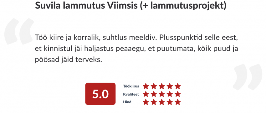 Nagu öeldud valis Kristine välja ettevõtja, kes oli pakkumise nimel ka veidi enam vaeva näinud ja seejärel läks kõik nagu tavaliselt – sõlmiti leping ja lammutustööd võisid pihta hakata. Ettevõtja pidas tähtaegadest kenasti kinni ja nii juhtuski, et kui Kristine puhkuselt tagasi tuli, siis maja enam polnud ja kõik jäätmed oli utiliseeritud. Erilist head meelt tundis Kristine aga selle üle, et tööde käigus jäi kinnistul haljastus peaaegu puutumata ja kõik puud-põõsad terveks.