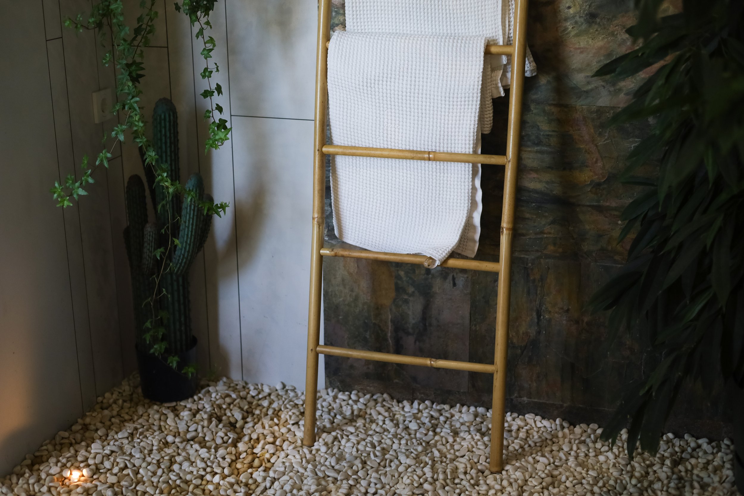 Väikeses vannitoas aitab ruumi säästa redel rätikute hoiustamiseks. Redeli saab paigaldada seina äärde, kus see toimib nii rätikute kuivatina kui ka hoidjana. Redelile saab riputada nii märjad rätikud kui ka puhtad, oma kasutuskorda ootavad rätikud. Saadaval on spetsiaalsed vannitoa redelid, kuid unikaalse välimuse jaoks võid valida ka vintage-redeli vanakraamipoest. Kui redel on puidust, tasub see kindlasti töödelda niiskuskindlaks. Alternatiivina saab redeli ka ise ehitada, kui sobivat varianti poest ei leia.