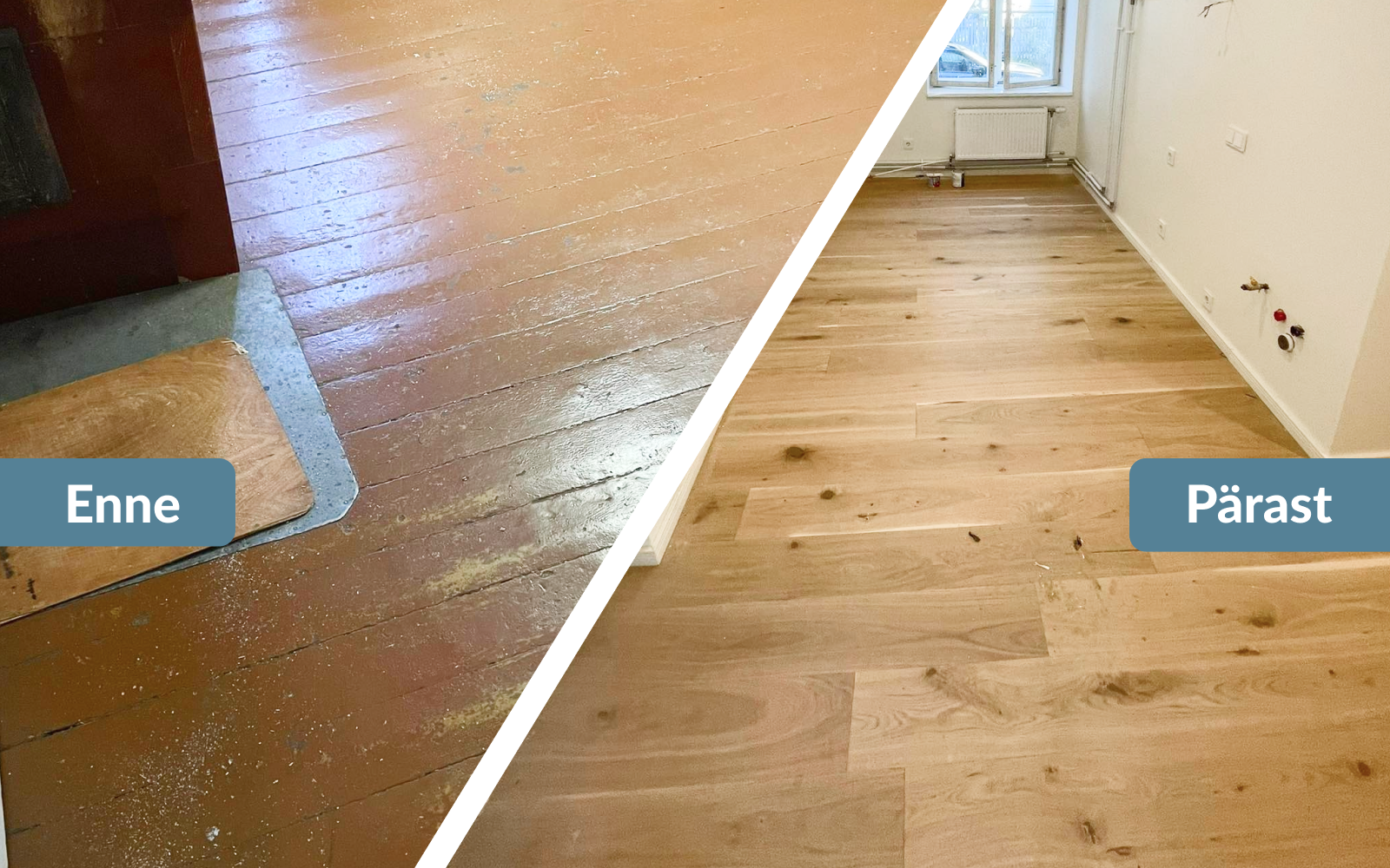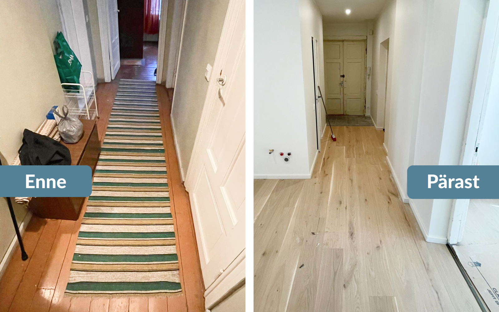 Algselt tellis Timo ainult põrandate vahetuse koos soojustamisega. „Põrandad said tehtud väga hästi, lammutus nulli, soojustamine, loodimine, parkett ning kiiresti, samuti said pandud liistud väga keerulistesse kohtadesse,“ rääkis Timo, lisades, et ka koridori ja garderoobi põrandate plaatimine sai väga korralikult tehtud.