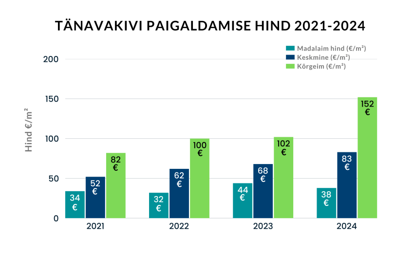 Hange.ee ehituskeskkonna analüüsist selgus, et 2021. aasta tänavakivi paigaldus hind oli vahemikus 32-82€/m² ja keskmiseks hinnaks kujunes 52€/m²kohta. 2021. aastal püsisid hinnad suhteliselt stabiilsena, kuid märkama võis hakata esimesi ehituskulude tõusule viitavaid märke, mis tulenesis eelkõige COVID-10 tingitud teadmatusest ja ebakindlustest. Pandeemia puhkemisel pikenesid tarneahelad ja materjalide kättesaadavus, mille tulemusena kerkis ka materjalide hind. Lisaks reisipiirangutele seati ka tingimusi, millistes oludes, mitmekesi tohib töötada, mis omakorda tekitas ehitusturul tööjõupuuduse.
