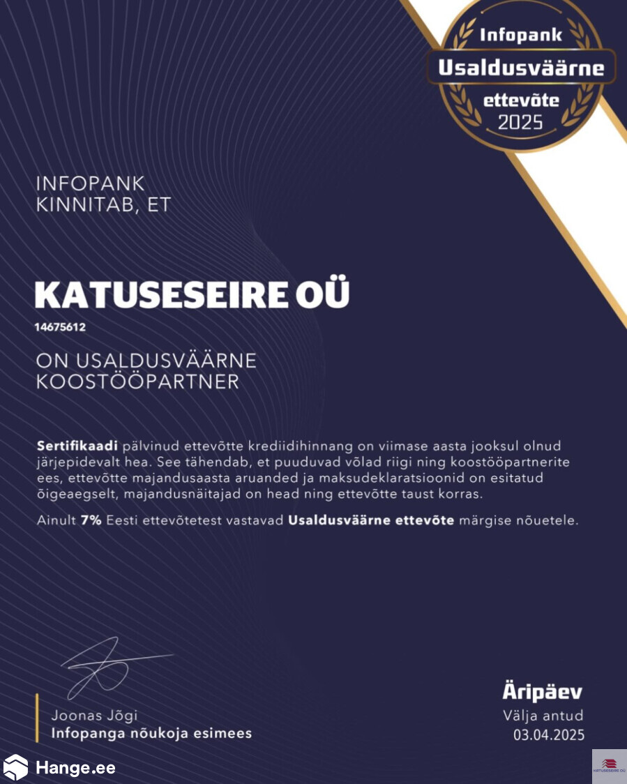 | Koduleht: | https://katuseseire.ee/ |