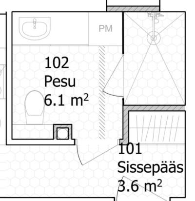 Pesuruumi põrand. Vana betoonpõranda lõhkumine. Uue põranda soojustamine, elektrikütte kaabli paigaldus, põranda valamine, hüdro+ põranda plaatimine Kokku 8m2.