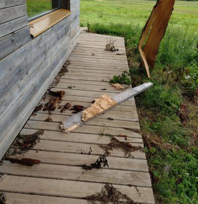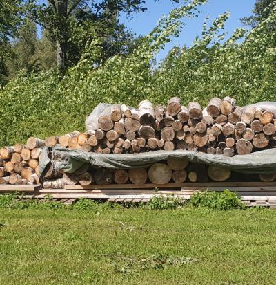 Kahe puu saagimine ja küttepuudeks lõhkumine