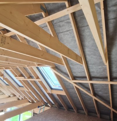 Aeroc ladumine, vahelae ehitamine ning sarikate paigaldus koos kile, distantsliistude ja roovitusega