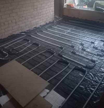 Köögi ja vannitoa põranda soojustamine armeerimine ja betoneerimine. 32 ruutmeetrit kokku