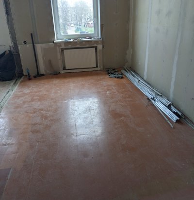 Köök/elutoa ja koridori põranda ühtlustamine, väikse kipsseina ehitamine
