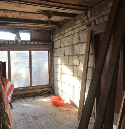 Väljaehitamatta majaosa lammutus ja betoonist platformi eemaldamine.