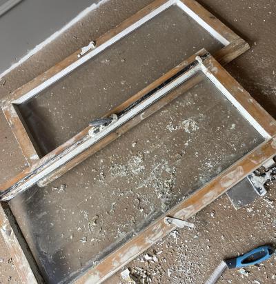 Aknaklaasi paigaldamine. 4 mm klaas mõõdus ca 1200 * 1300. Tuleb üle mõõta