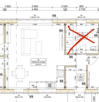 Wc, dush märgruumide püstaku ehitusprojekt 2 korrusel, puumajas