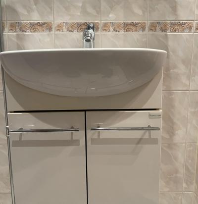 Dushikabiini eemaldamine, trapi ja uue dushisegisti paigaldamine, uue kraanikausi ja segisti paigaldamine, pesumasina ühendamine