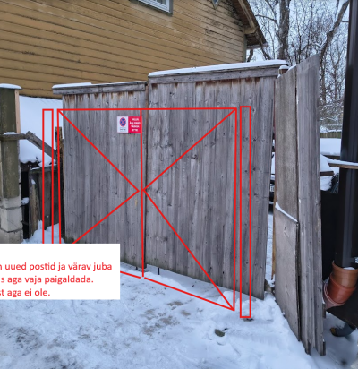 Aiaväravate ja aiaosa katmine värvitud laudadega