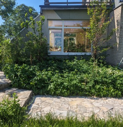 Kuuseheki eemaldamine, vôrk-vôi paneelaia paigaldamine, elupuude istutamine