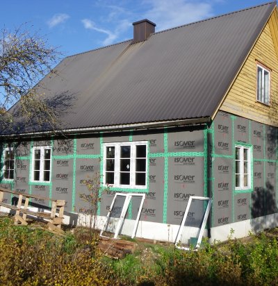 Kortermaja puitfassaad soojustusega kolmele seinale ja aknapaled ning plekid