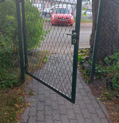 Vana aia lammutus ja 3 D keevispaneel aed koos vundamendiga
