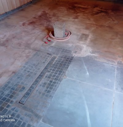 Hüdroisolatsiooni paigaldamine sauna, plaatimine ja lavaehitus.