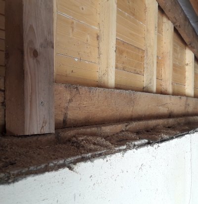 Aia ehitus (postid, postivundament ja puidust laudis)