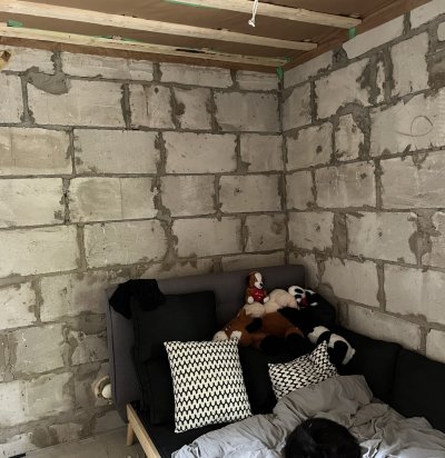 Lintvundament, bauroci kiviga esimese korruse ladumine