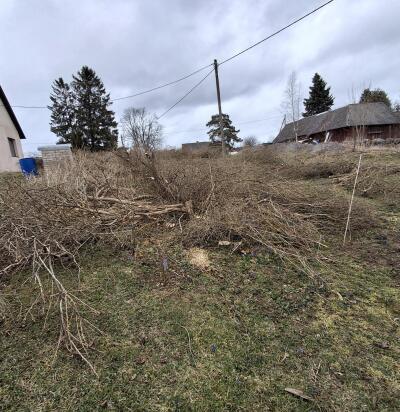 Puuokste äravedu. Sireli heki oksad umbes 25 m hekk
