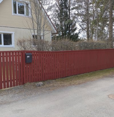 Tänavaäärne puitlippidega piirdeaed koos auto- ja jalgväravaga (21,5 m)