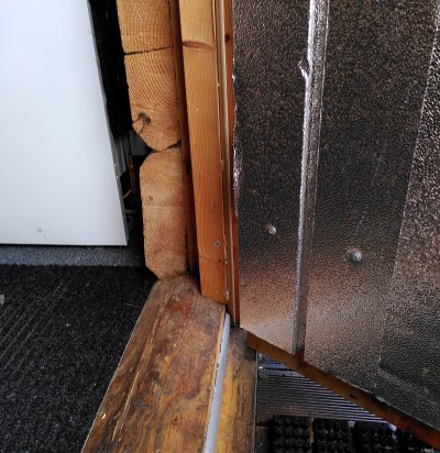 Palkmaja välisukse vahetus ukseava kohandamise ja viimistlusega.